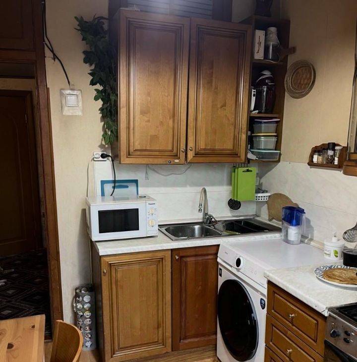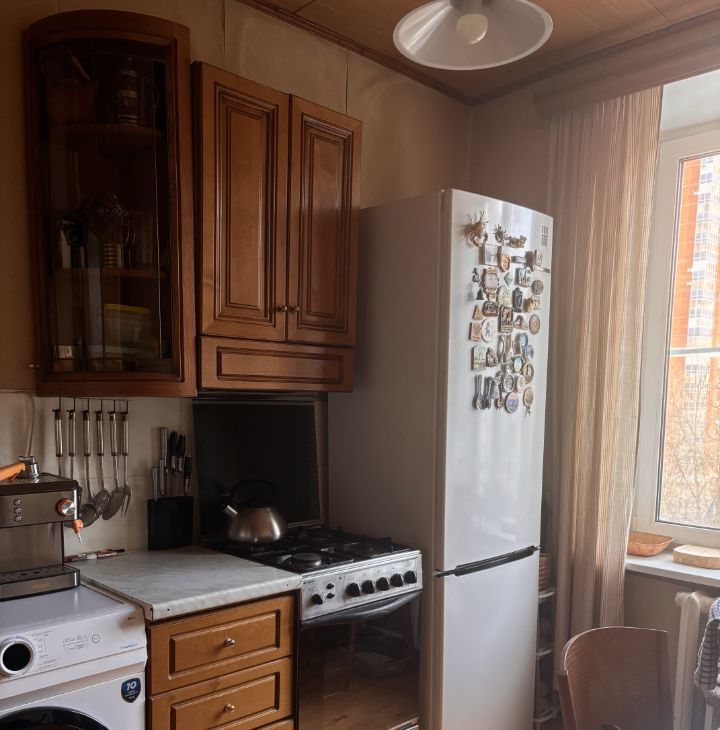 Расположение: кирпичный дом, квартира с окнами в двух комнатах и кухне выходит во двор (восточная сторона), в одной комнате — на проспект, парк и МГУ (западная сторона). Благодаря этому в квартире всегда есть солнце.