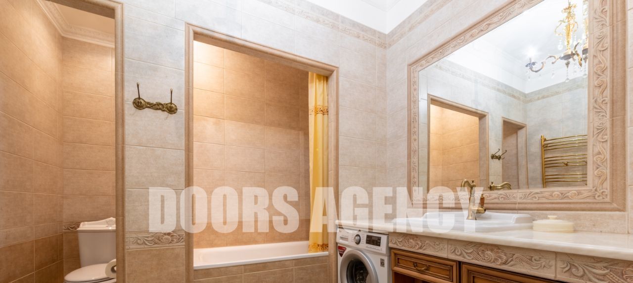 Планировка: кабинет, спальня, кухня-гостиная, три балкона, два совмещенных санузла (с душевой и ванной). В квартире имеется вся необходимая бытовая техника, в том числе: духовой шкаф, посудомоечная машина, микроволновая печь, телевизор. Установлены теплые полы и кондиционеры. Есть бойлер. Вид из окон - во двор.