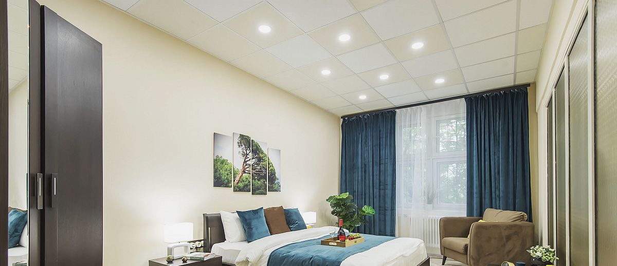 Спальные комнаты оснащены двуспальными кроватями, платяными шкафами, прикроватными тумбами и предметами декора. Просторная гостиная площадью более 30 кв. метров позволит Вам душевно провести время в кругу семьи или небольшой компании друзей. Наличие вместительной гардеробной комнаты сделает Ваше пребывание в квартире более комфортным. В нашей квартире есть все , что может вам потребоваться - бытовая техника, включая стиральную и посудомоечную машины, ЖК-телевизоры, микроволновая печь, холодильник. К Вашим услугам высокоскоростной беспроводной интернет, кабельное телевидение, фен.