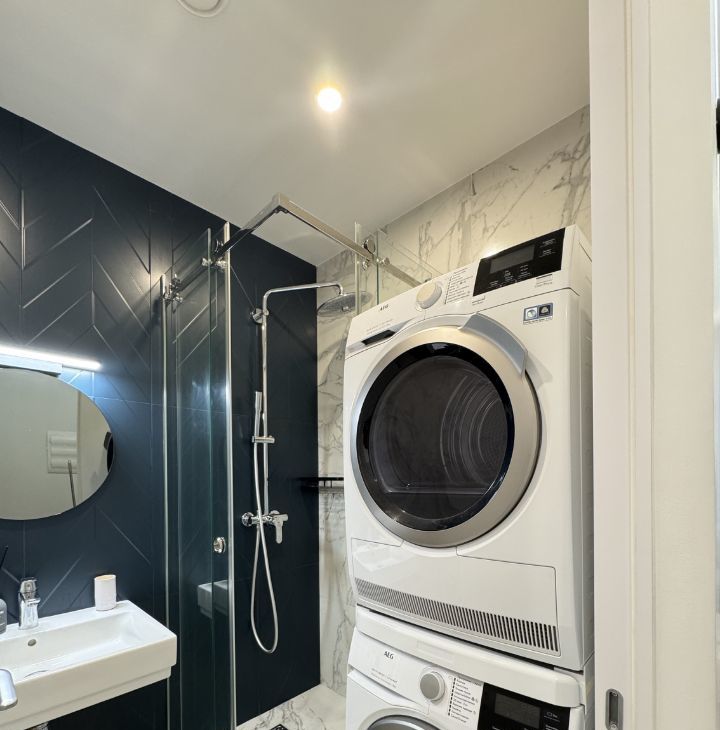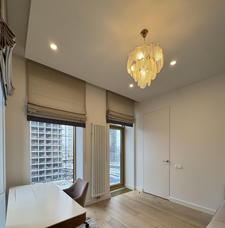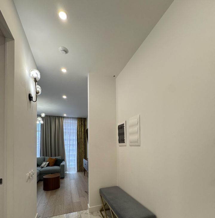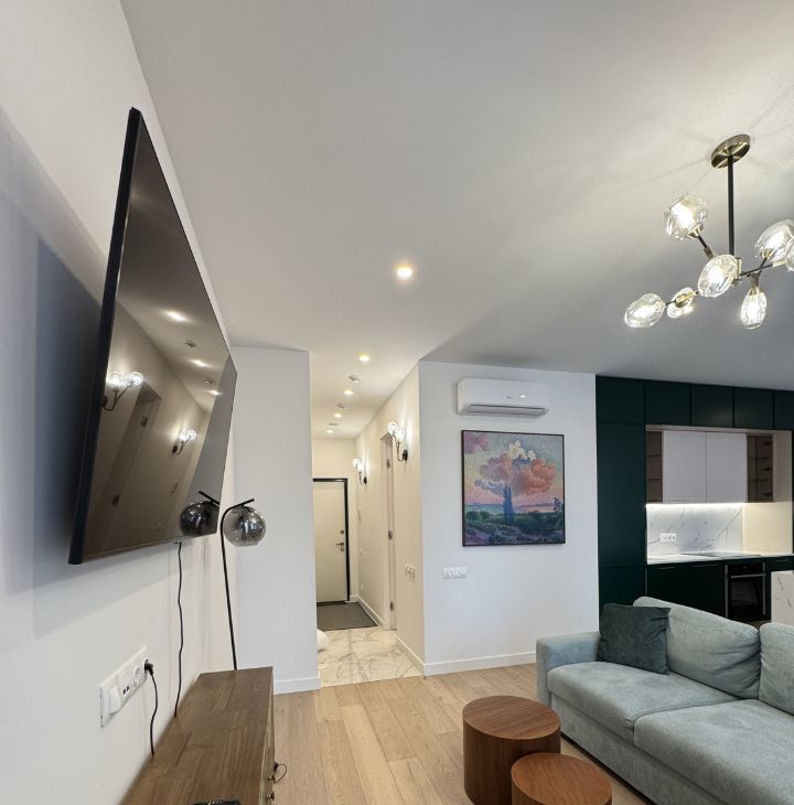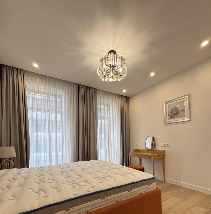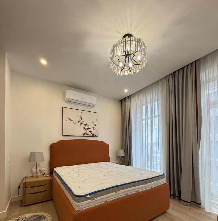 Квартира выполнена в дизайнерском стиле и полностью готова к проживанию. В комнатах установлена современная мебель, на кухне — вся необходимая техника: холодильник, посудомоечная машина, посудомойка. В апартаментах два совмещенных санузла, в одном из которых есть ванна, а в другом — душевая кабина. Для вашего удобства в квартире установлены кондиционер и телевизор.