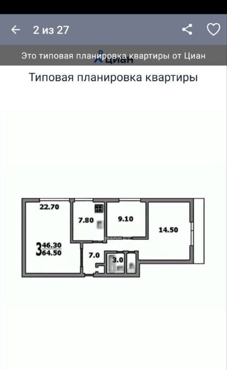 Арт. 127879722 Сдается 3х комнатная квартира, 64,5 м2.