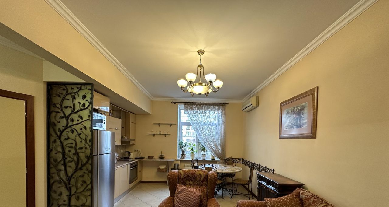 Предлагается в аренду просторная квартира в добротном кирпичном доме (индивидуальный проект) с потолками 3 метра в Гагаринском районе, рядом с метро "Университет". Качественный ремонт. Кухня-гостиная и две изолированные комнаты. Встроенный кухонный гарнитур под единой столешницей (варочная панель, духовой шкаф, вытяжка, посудомоечная машина и пр.). На полу ламинат и плитка. Окна (ПВХ) выходят во двор. Установлен кондиционер. Много мест для хранения одежды. Санузел совмещен (ванная и душевая кабина). Ухоженный подъезд. Консьерж. Видеонаблюдение. Парковка во дворе под шлагбаумом.