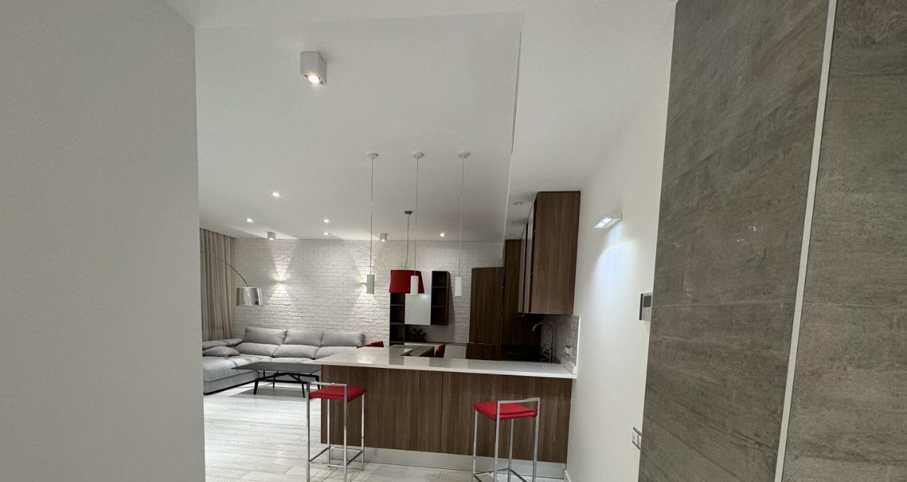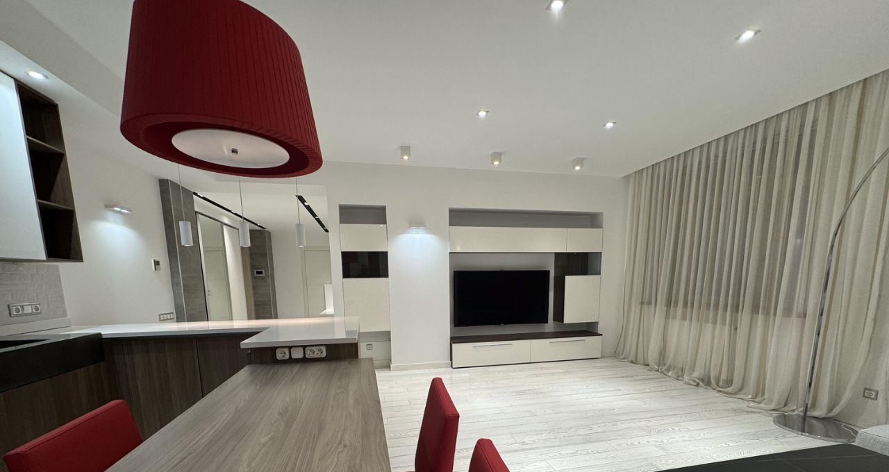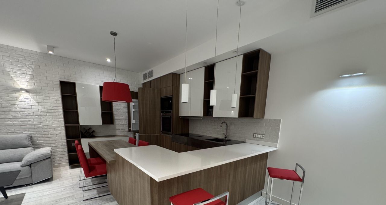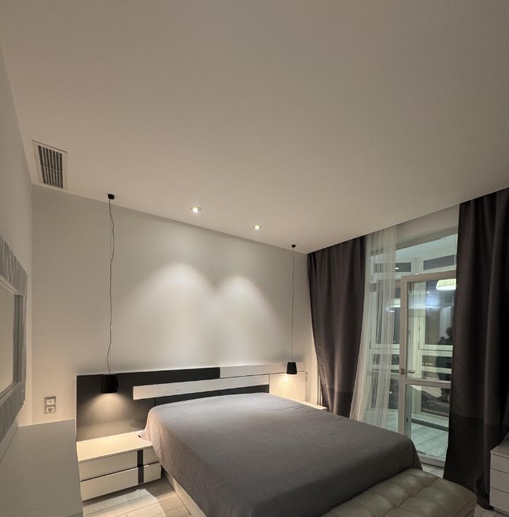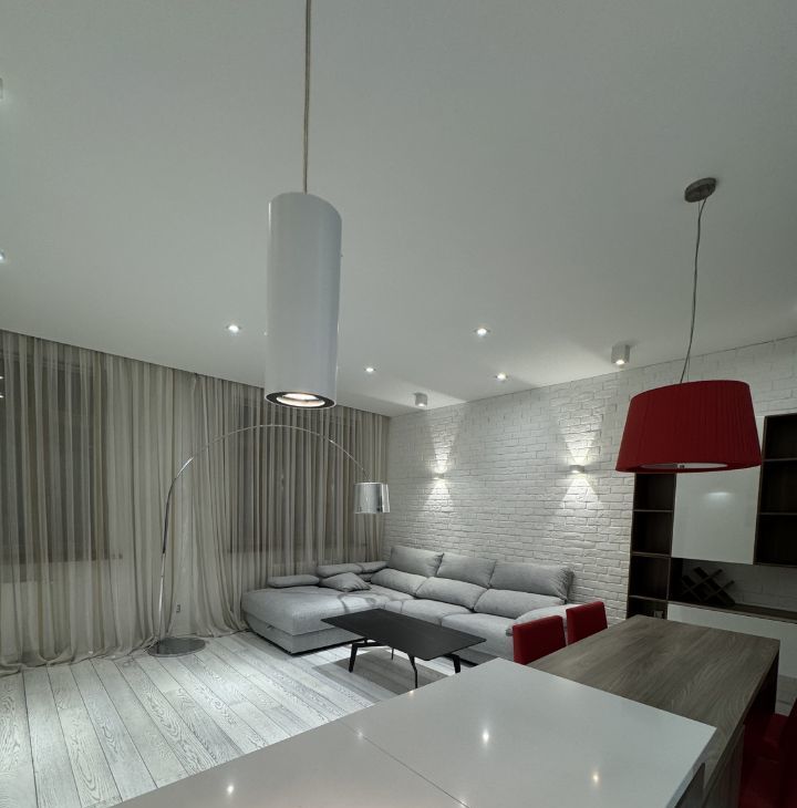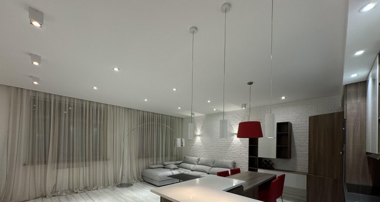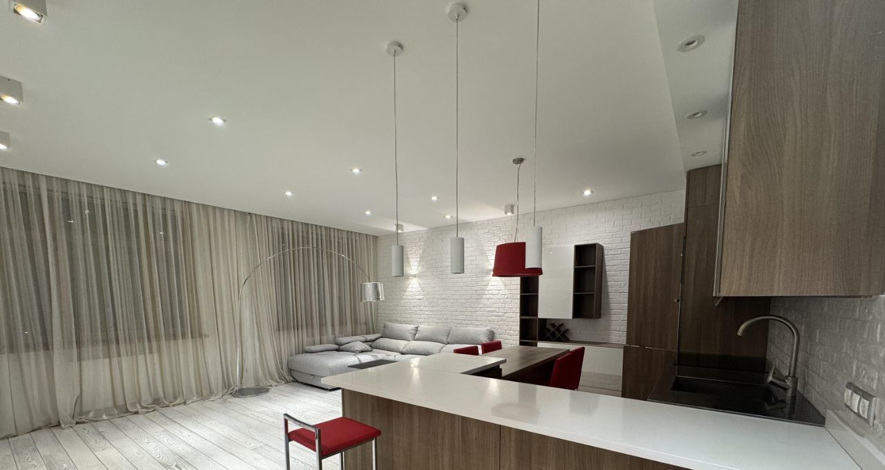 Сдается на длительный срок прекрасная дизайнерская квартира в ЖК Доминион. Квартира полностью укомплектована всем необходимым. Две отдельные спальни и просторная кухня-гостиная. Вквартире установлена итальянская кухня Scavolini с техникой, встроенные шкафы, мебель. территория комплекса огорожена, строго охраняемая, двор без машин. В комплексе есть подземный паркинг.