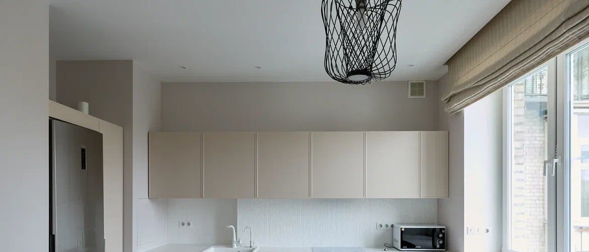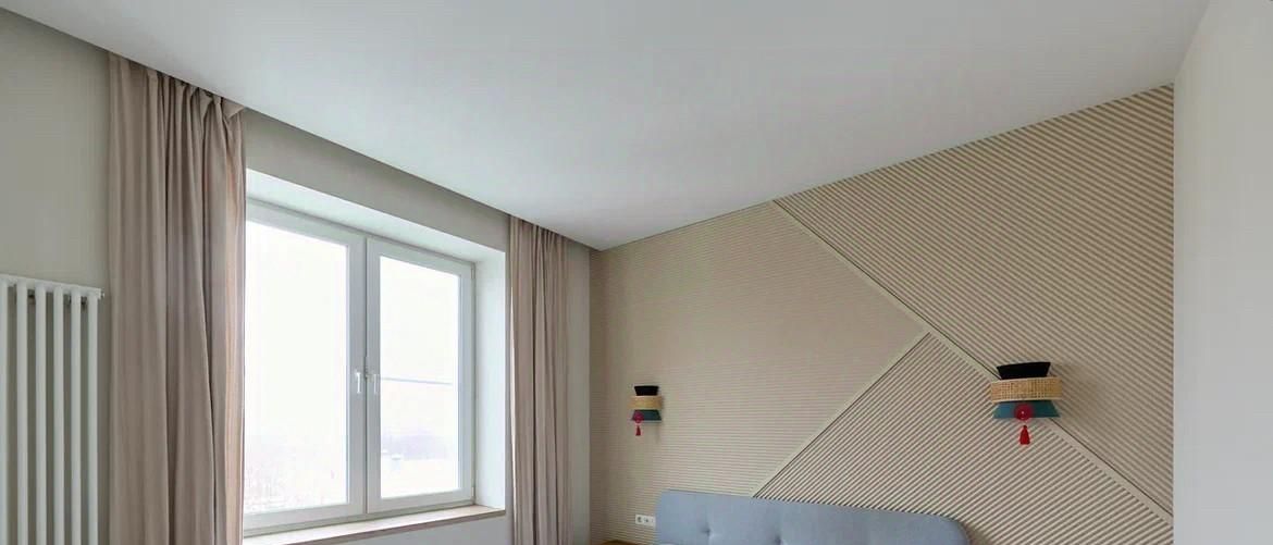 Современный ремонт в светлых тонах с элементами бохо-стиля, качественная мебель и техника