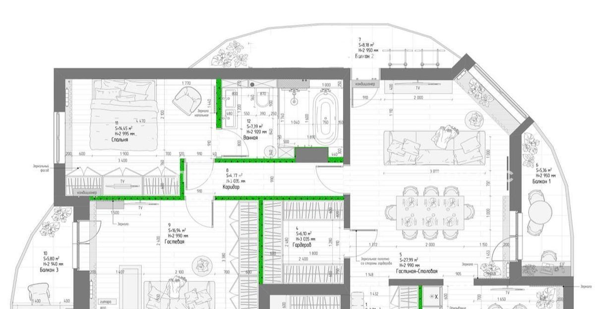 Осталось только выбрать и заказать мебель на ваш вкус или по дизайн проекту. (Не стали заказывать мебель, чтоб вы могли решить какое наполнение шкафов вам нужно), установить потолок и выбрать розетки с выключателями.