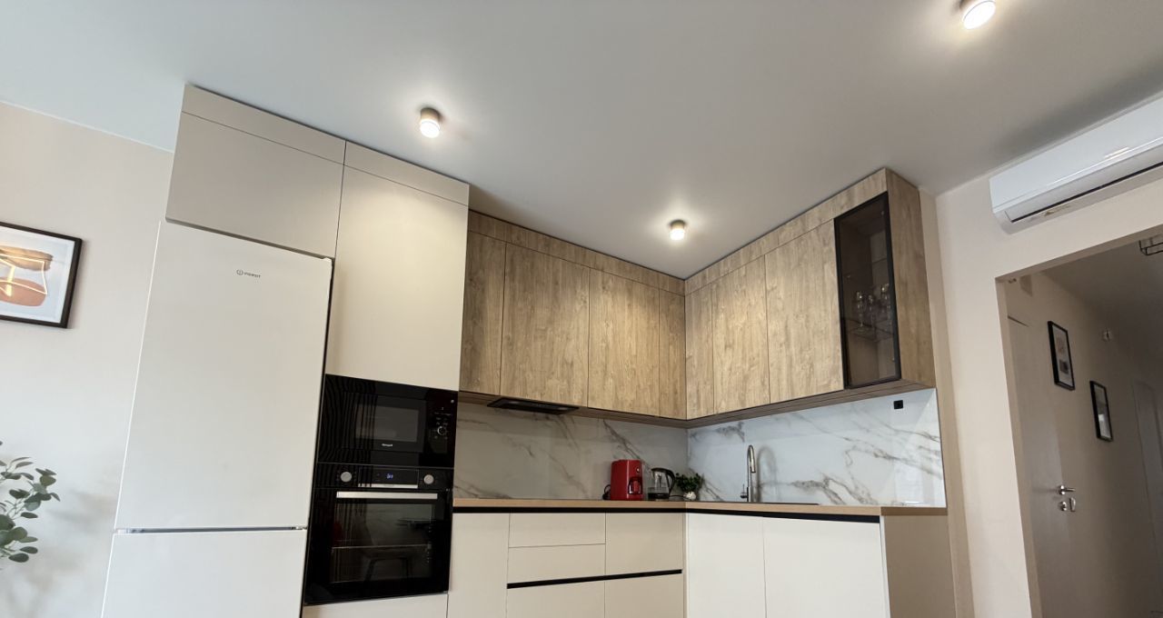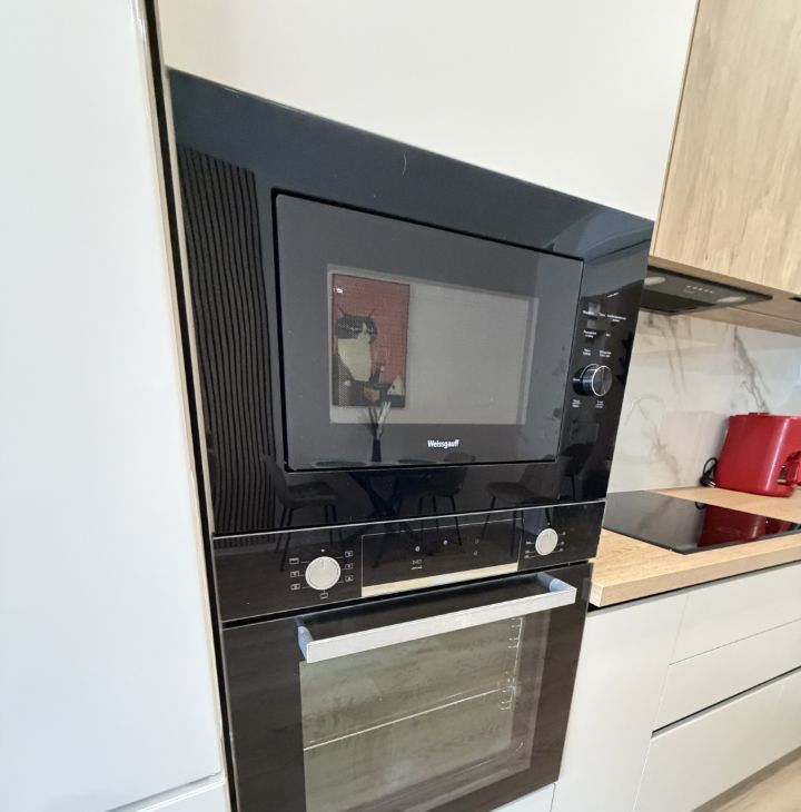 Техника новая (кондиционер, телевизор 65, индукционная плита, духовой шкаф, микроволновая печь, стиральная машина, посудомоечная машина 60).