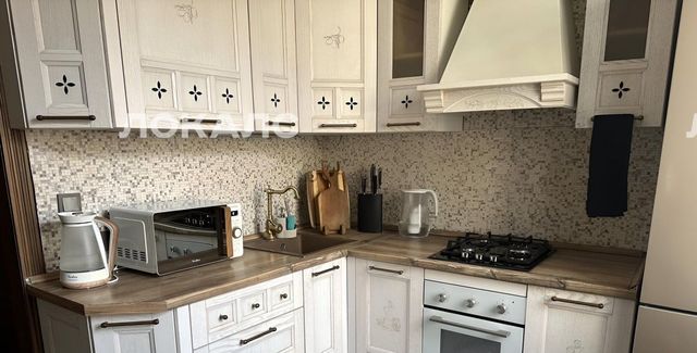 Квартира расположена на 4-м этаже четырёхэтажного дома. Она порадует вас своими светлыми и изолированными комнатами, высокими потолками и качественным ремонтом. Дом сталинской эпохи — это не просто надежность, это толстые стены, отличная звукоизоляция и тепло зимой. В квартире остаётся вся качественная мебель и техника (кроме телевизоров), что позволяет заехать без лишних хлопот и затрат. Квартира идеальна для семьи с детьми.