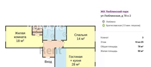 3-к кв. Москва Люблинская ул., 78к2 (78.0 м²)
