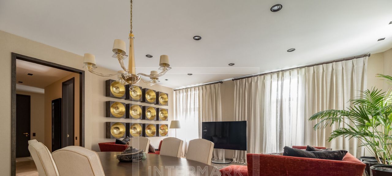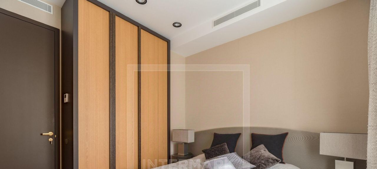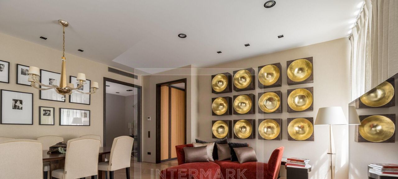 ID 41195. Красивая 3-комнатная квартира в фасадном доме на Патриарших прудах, освобождается с начала ноября. Дизайнерский ремонт в современном стиле, высокие потолки. Система кондиционирования. Полностью оборудована и меблирована. Планировка: столовая-гостиная с выходом на балкон, кухня, основная спальня со своей ванной комнатой, гостевая спальня, гостевой санузел с душем, хозяйственная комната. Встроенные гардеробные шкафы. Окна выходят в тихий двор. Парковка во дворе. Поблизости расположены рестораны, музеи, а также парки для прогулок. Желательно без животных