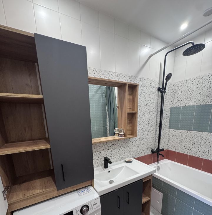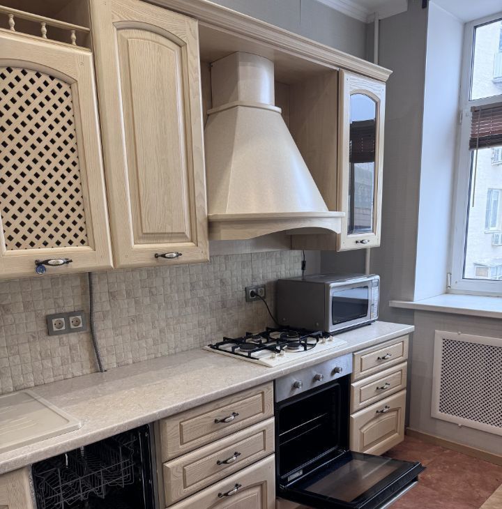 Квартира полностью укомплектована для жизни. Кухня оснащена всей необходимой техникой: посудомоечная машина, холодильник, микроволновая печь, варочная панель и духовка, в ванной - стиральная машина.