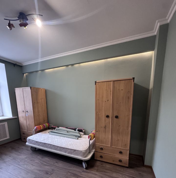 Квартира сдается впервые. Потолки 3 метра, толстые стены (соседей не слышно).
