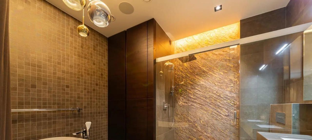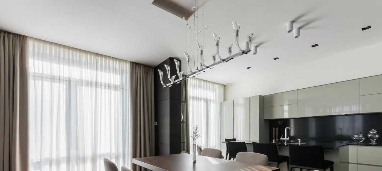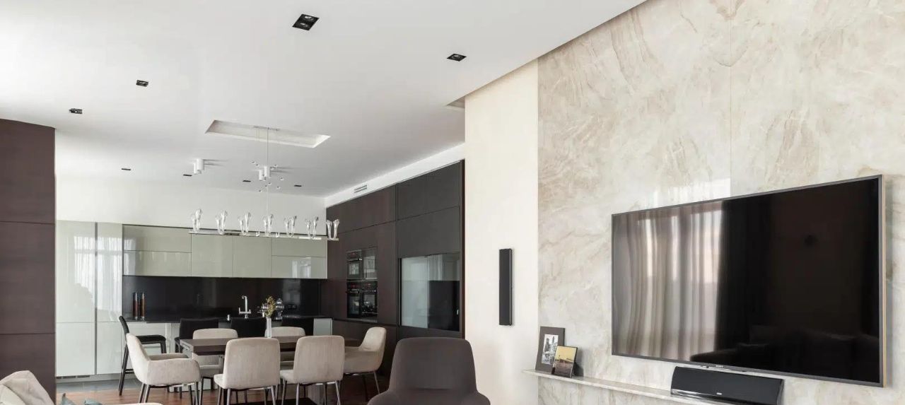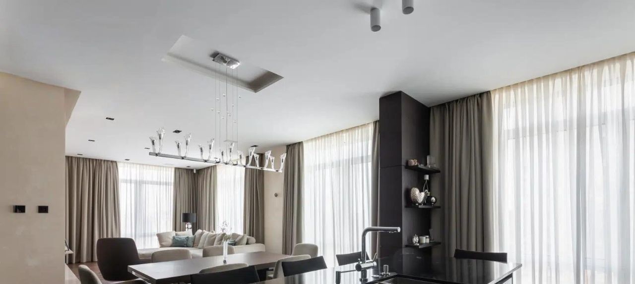 Общий метраж 204 метр квадратный, грамотное пространство: выделена зона гостиной 20 метров , столовой и кухни в 27 метров с большими окнами; 2 спальни, одна из которых мастер-спальня со своей ванной комнатой и гардеробной, отдельно оборудована постирочная, большой второй гардероб, совмещенный санузел с душевой, просторный холл.
