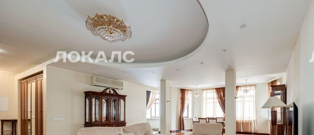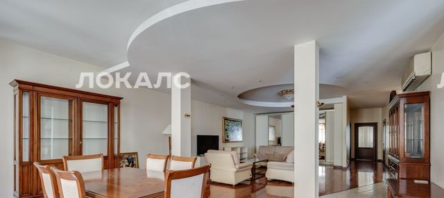 Просторная трехкомнатная квартира площадью 160 м² в доме бизнес-класса на Малом Каковинском переулке, в самом сердце Арбата. Современный дизайнерский ремонт в английском стиле с использованием темного дерева, авторские люстры и многоуровневые потолки создают атмосферу уюта и статуса. Просторная гостиная объединена со столовой и кухней, идеально подходит для приема гостей и семейных ужинов. В квартире две изолированные спальни, в одной — застекленная лоджия с видом во двор.