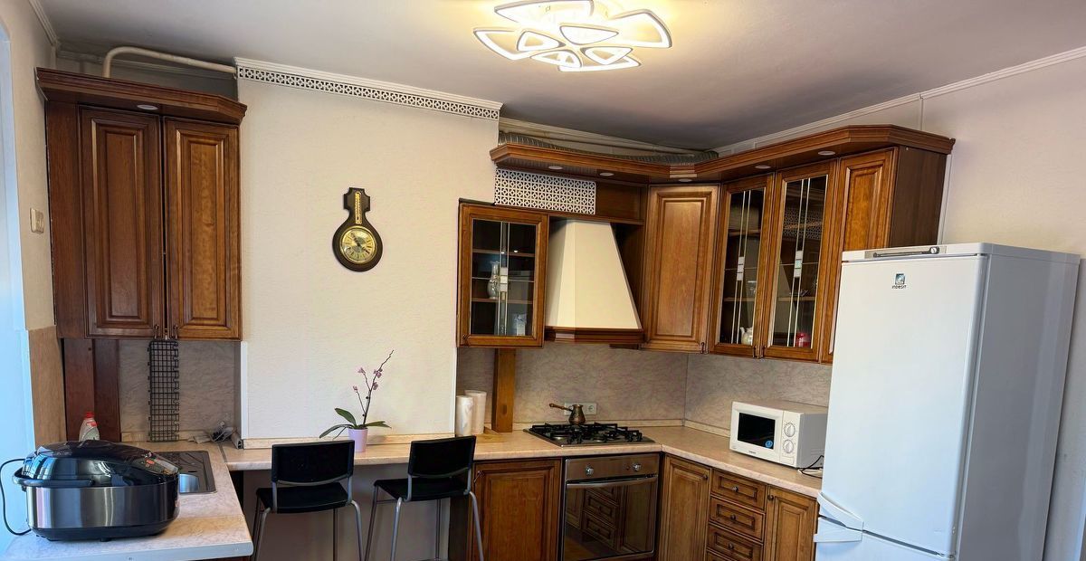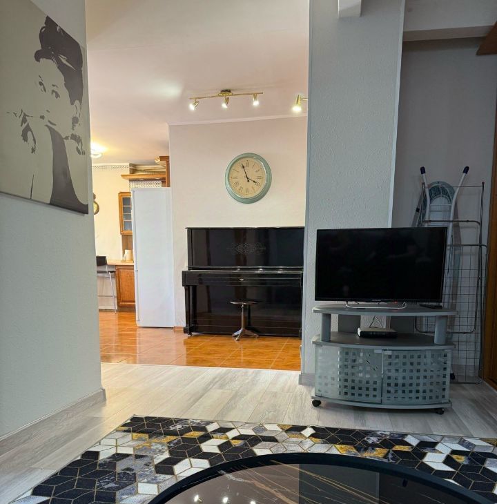 Просторная кухня со всей необходимой для комфортной жизни техникой, переходящая в уютную гостиную с большим диваном, который при необходимости можно трансформировать в кровать. Уютная спальня с комфортной кроватью и детская с очаровательной мебелью для вашего малыша. Если ваш ребенок уже подрос или вы будете проживать без ребенка, то мы уберем мешающую мебель.