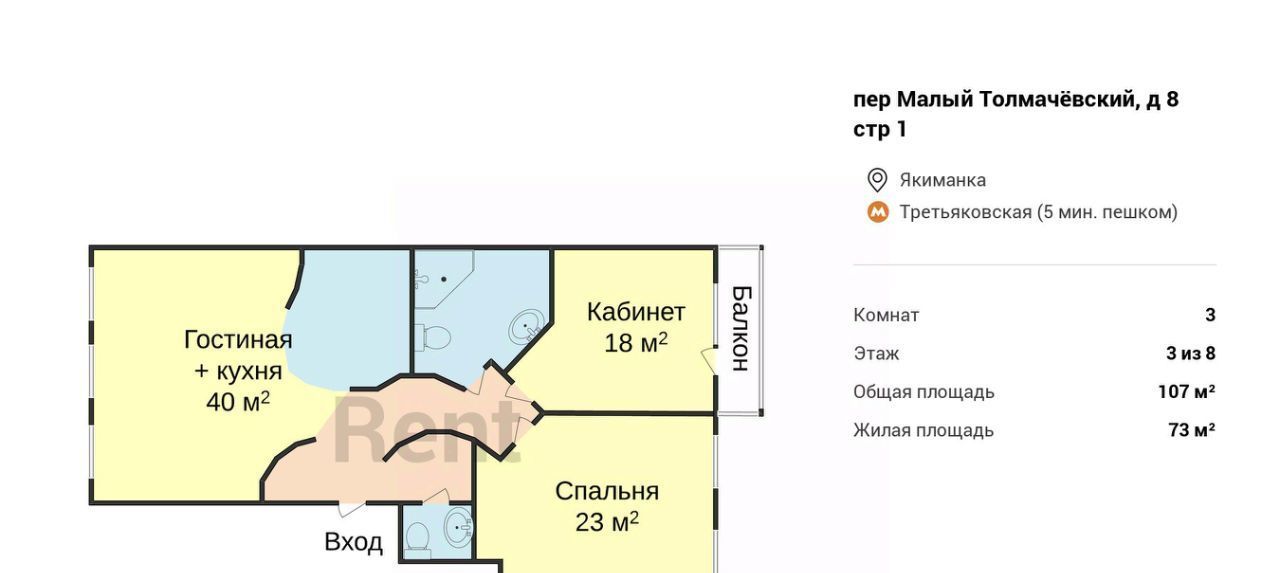 3-к кв. Москва Малый Толмачевский пер., 8С1 (107.0 м²)