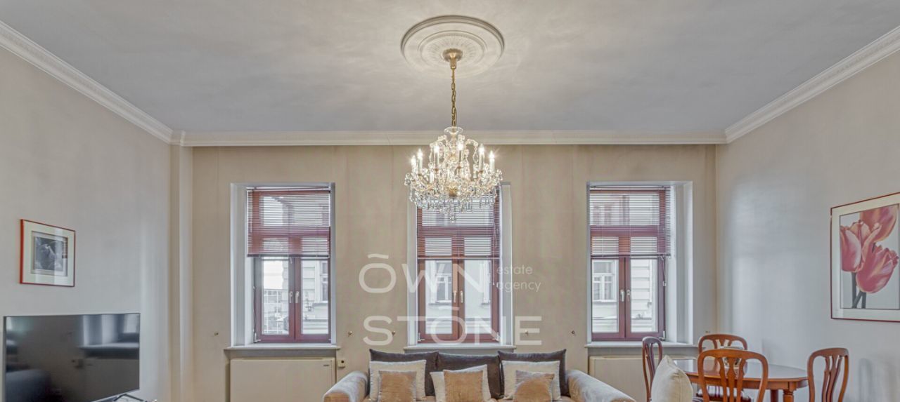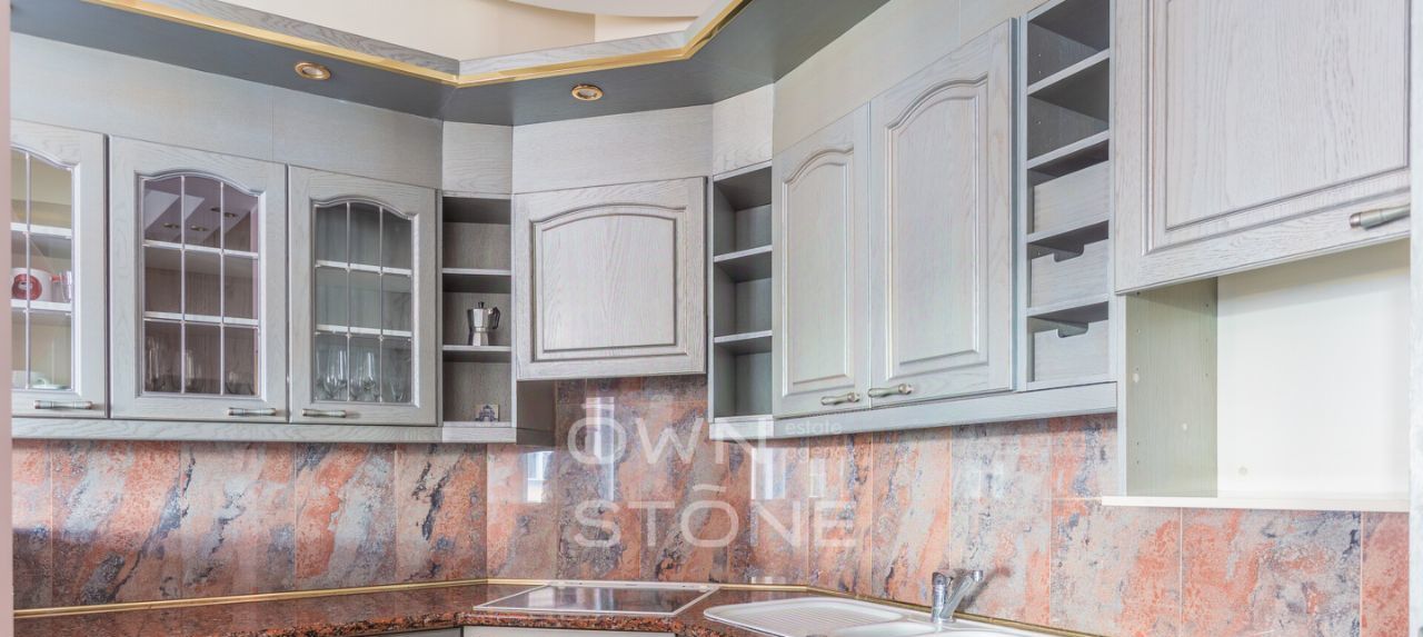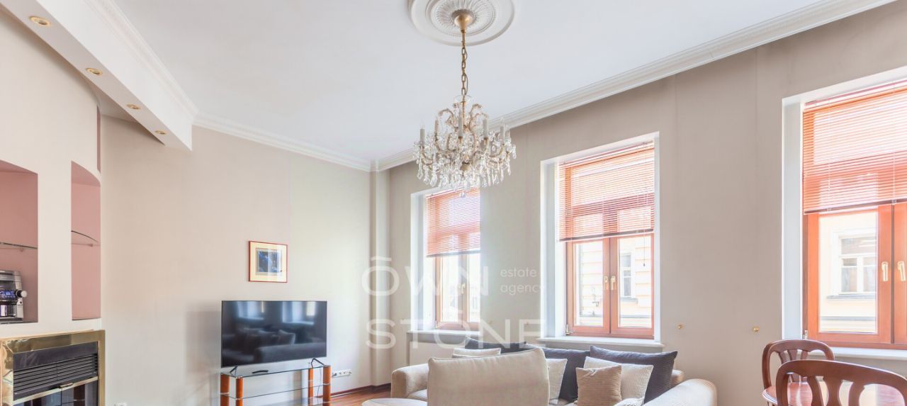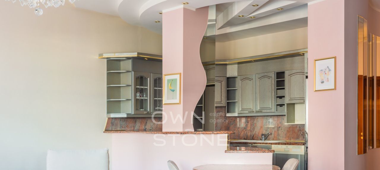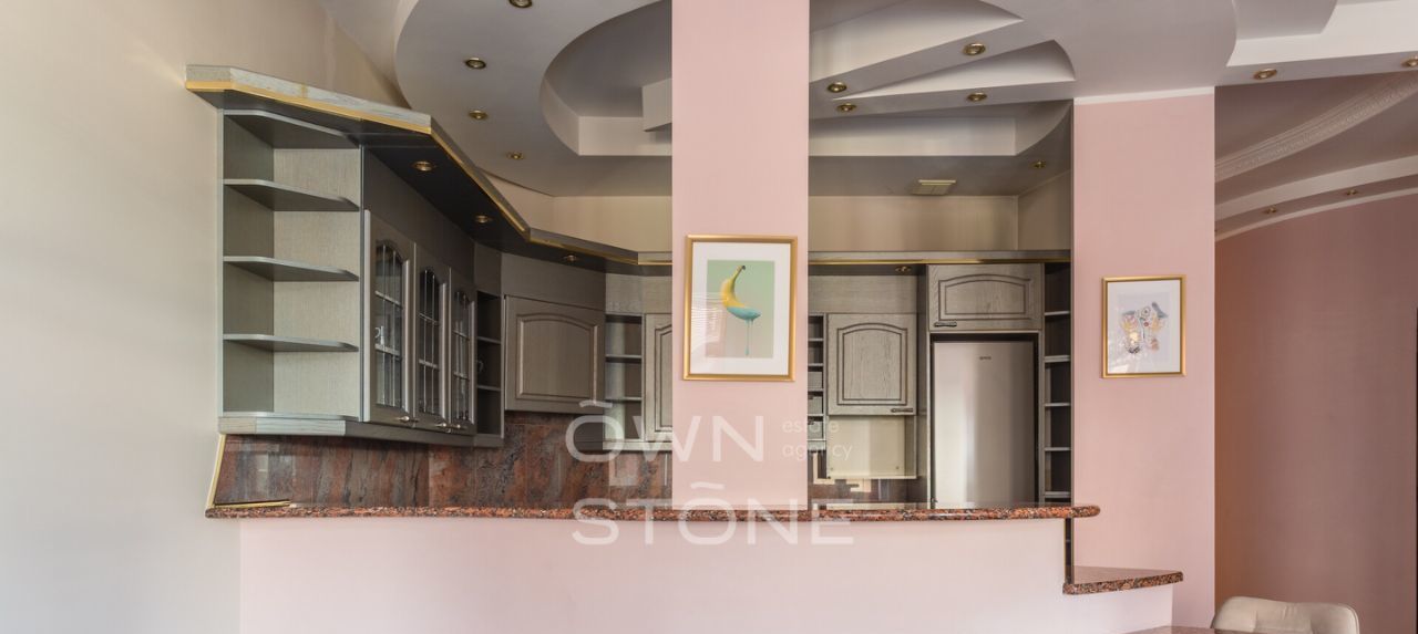 Пространство продумано до мелочей и грамотно зонировано. Высота потолков 3,1 м создает ощущение воздуха и свободы. Выполнен современный дизайнерский ремонт с использованием натуральных материалов: камня и дерева.