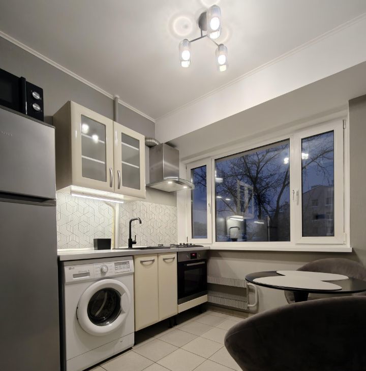 В наличии вся необходимая мебель как в комнатах, так и на кухне. Из техники есть кондиционеры, холодильник, телевизор и стиральная машина. Окна выходят во двор, поэтому вы будете защищены от шума улицы. Раздельный санузел с ванной.