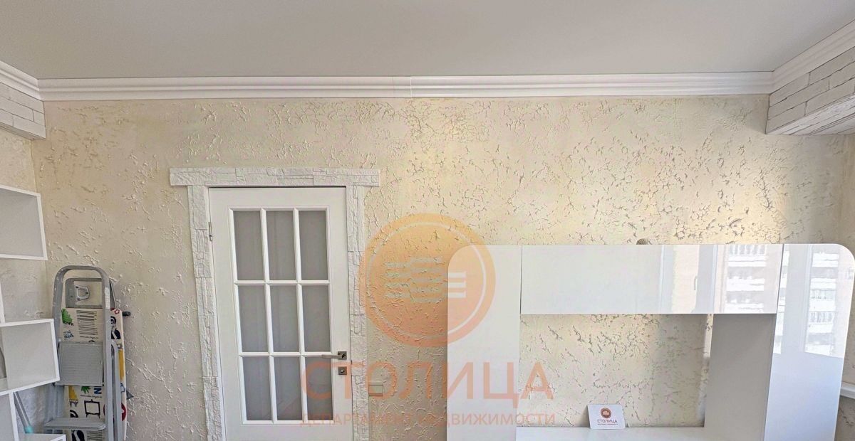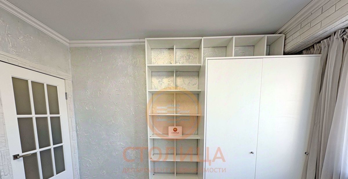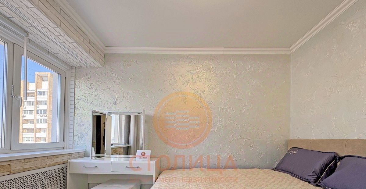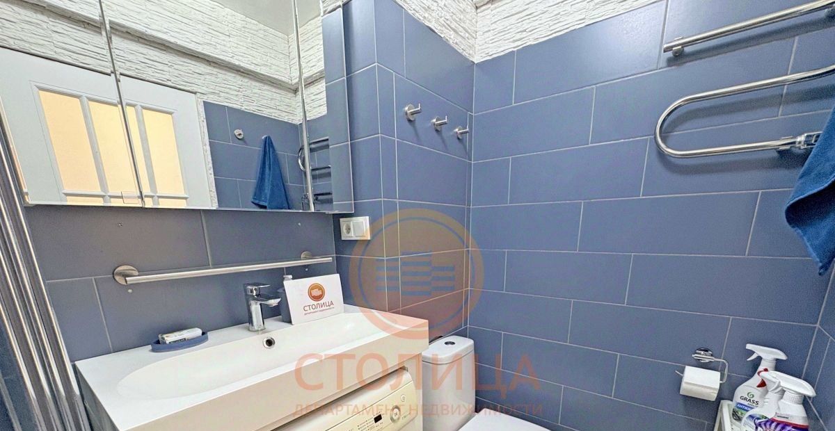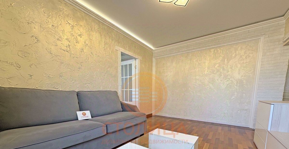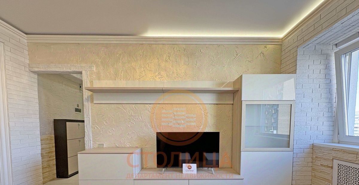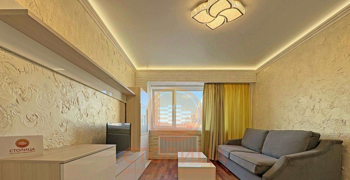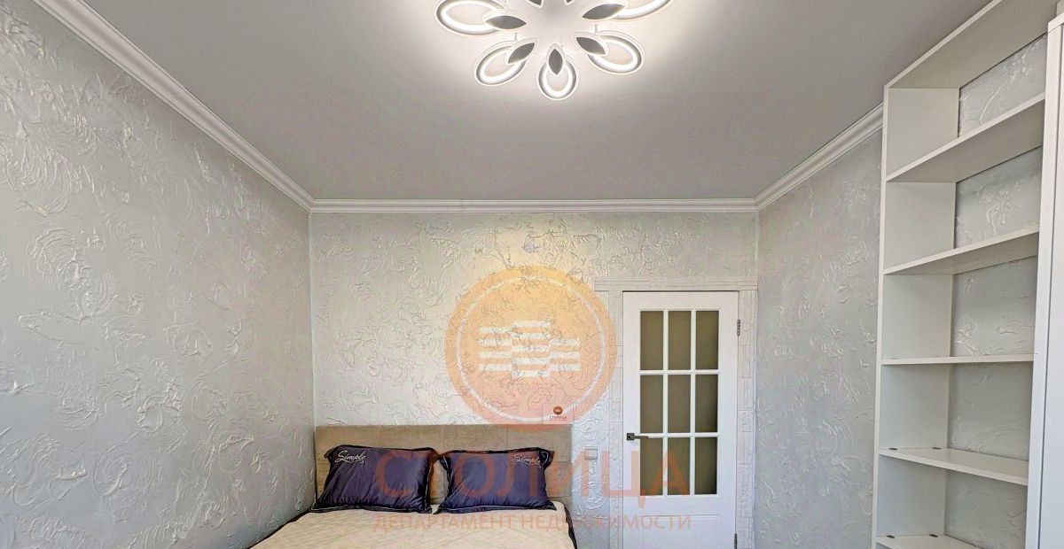 Планировка включает: кухню, спальню, проходную гостиную, кабинет и совмещённый санузел. В квартире есть вся необходимая мебель и техника для комфортного проживания. Во дворе предусмотрена охраняемая парковка под шлагбаумом. Район отличается развитой инфраструктурой.