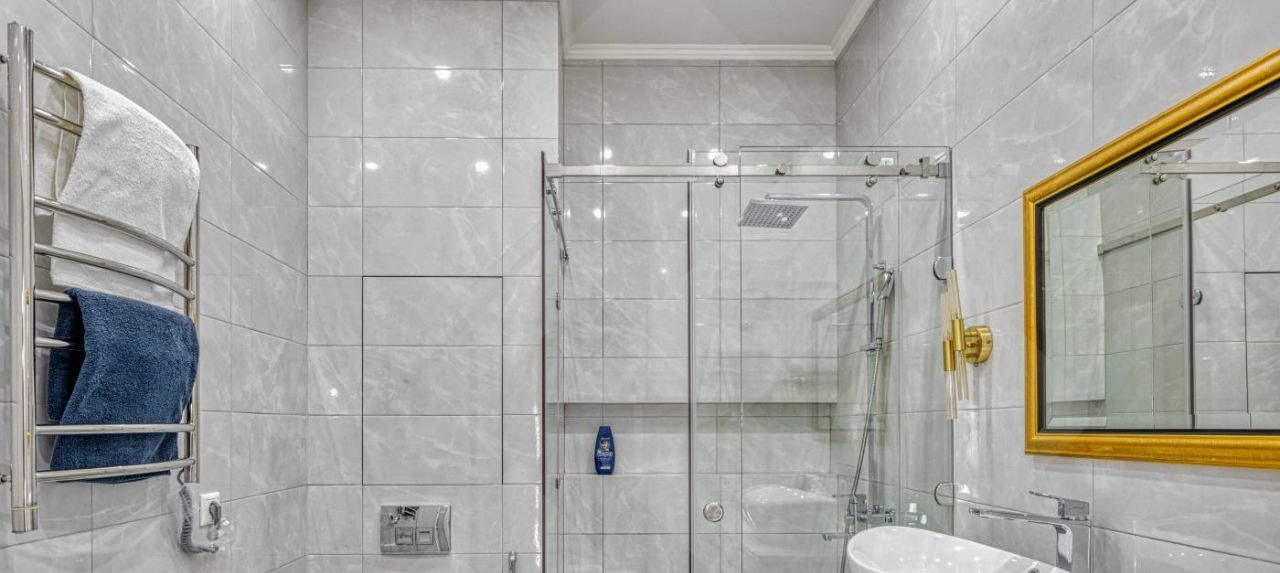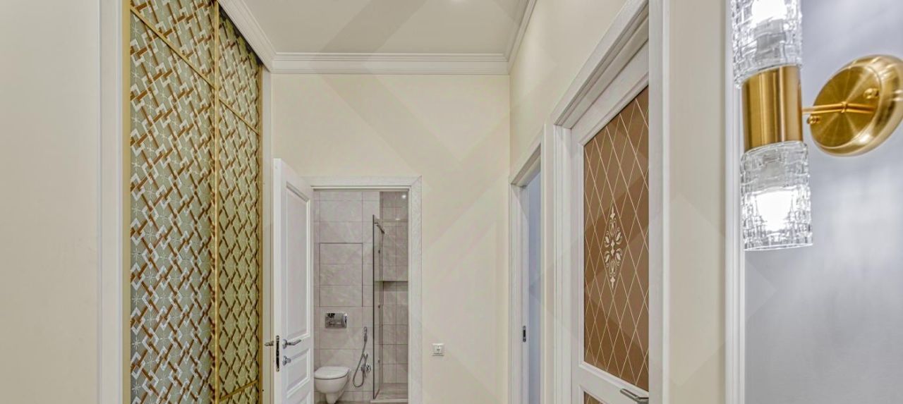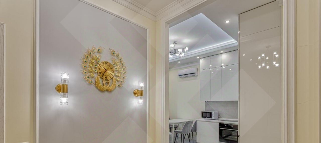 Имеется все необходимое для уютного проживания. Кондиционеры во всех комнатах. Кухня со встроенной техникой: холодильник, духовой шкаф, плита и посудомоечная машина. В ванной комнате установлена стиральная машинка.