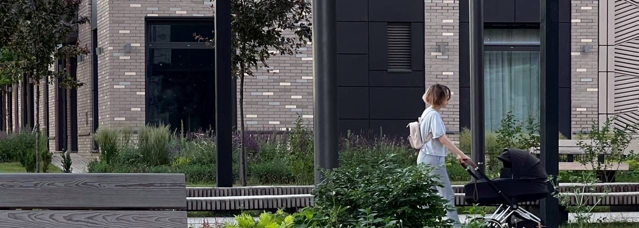 - В Комплексе закрытая, внутрення территория с детскими площадками и местами для отдыха.