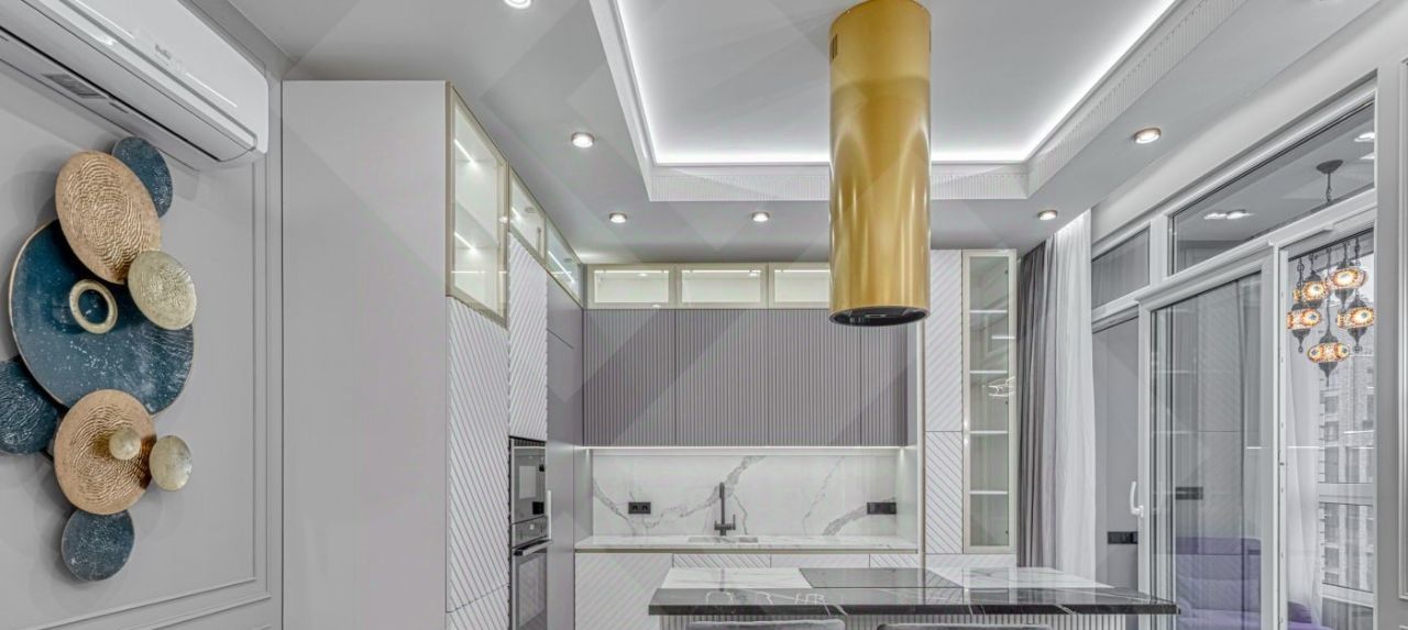 Функциональная планировка: кухня-гостиная со всей необходимой техникой фирмы NEFF, 2 спальни, одна из которых с собственной гардеробной комнатой, 2 санузла, с ванной и душевой кабиной со стиральной машинкой и сушкой, две лоджии, оборудованные под кабинет и кальянную(лаундж зону).