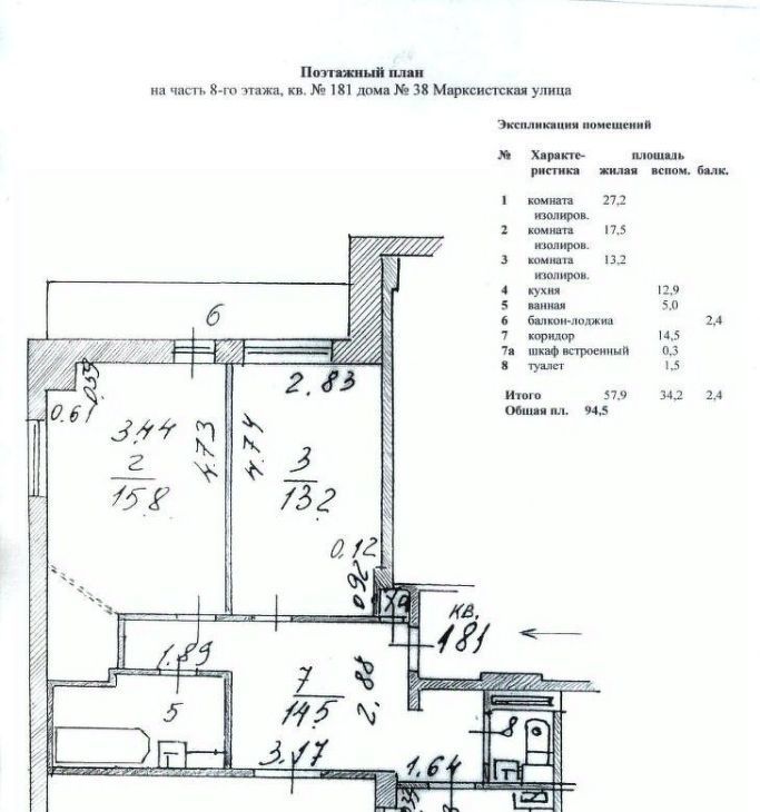 3-к кв. Москва Марксистская ул., 38 (94.5 м²)