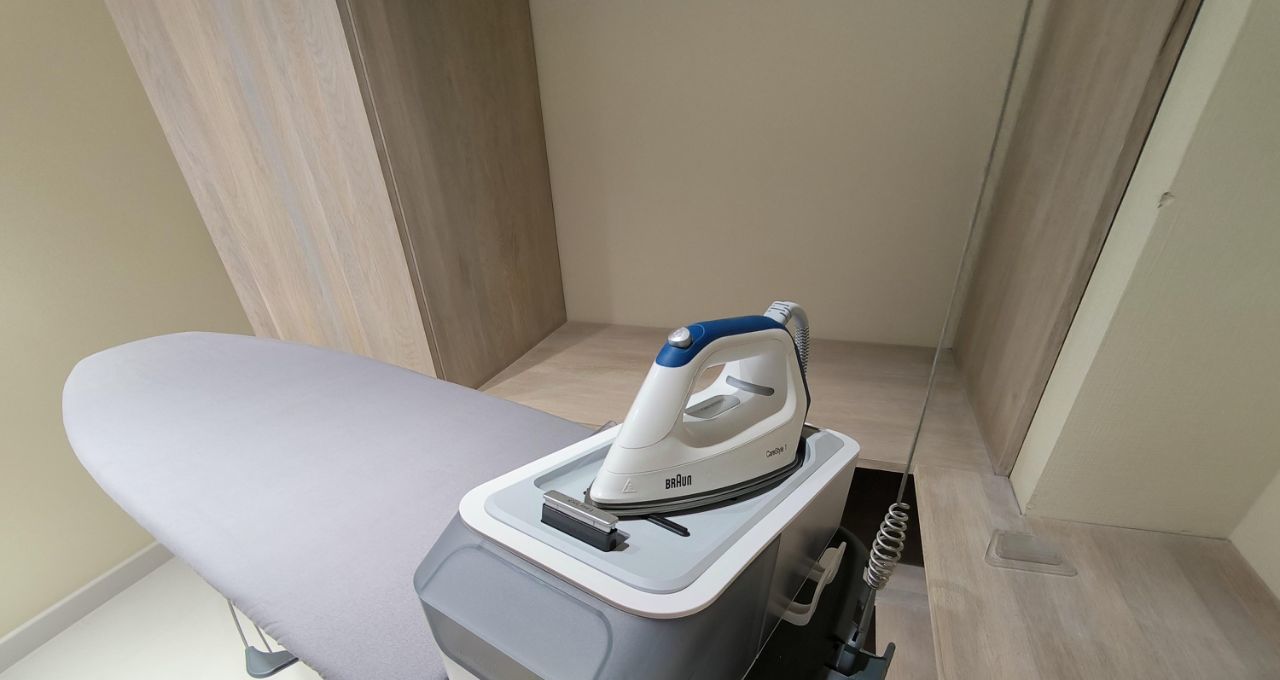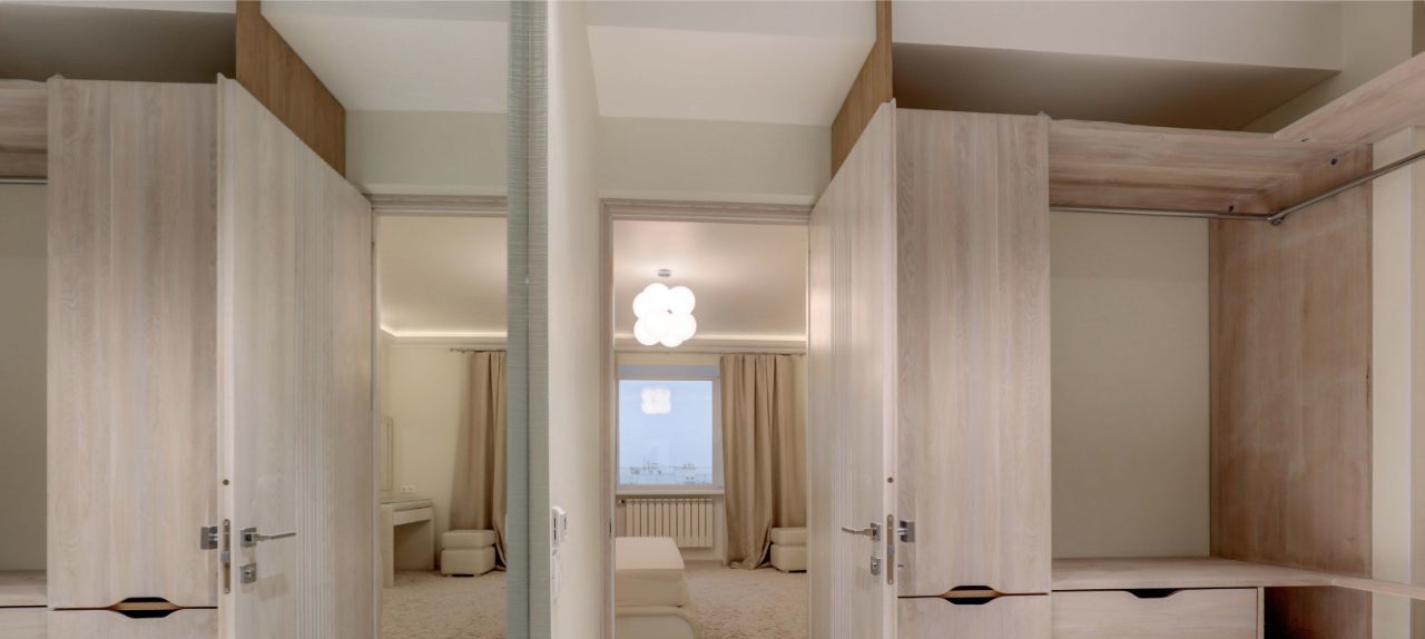 Ремонт 2020 года выполнен в светлых тонах. Квартира полностью укомплектована мебелью и современной техникой (пр-ва Япония) и готова к проживанию: на кухне: кухонный гарнитур со всей необходимой бытовой техникой премиального сегмента: посудомоечная машинка, духовой шкаф, вытяжка, холодильник, обеденная группа на 6 персон; в гостиной: диван+ 2 кресла (экокожа) с реклайнером; 2 спальные комнаты: 1) двуспальная кровать, прикроватные тумбы, тумба под TV, телевизор, удобное кресло с реклайнером; 2) двуспальная кровать, прикованные тумбы. Выделенная просторная гардеробная комната.2 санузла- ванна & душевая. Во всех санузлах японская сантехника: унитаз с автоматическими функциями ( автоматический регулируемый слив, подогрев и прочие японские "плюшки").