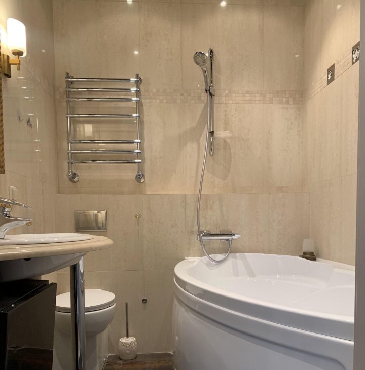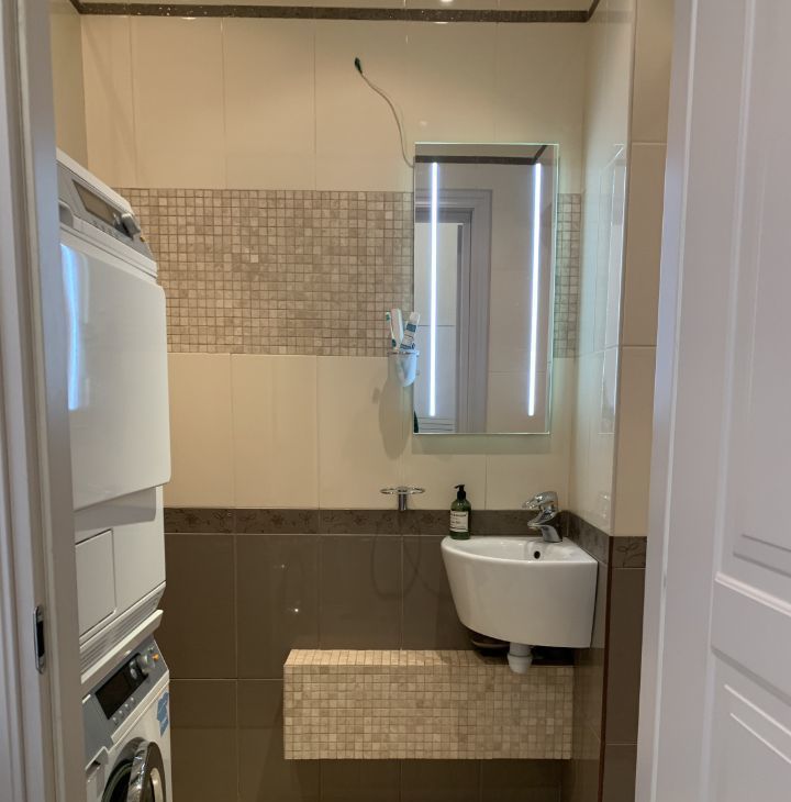 Санузлы: 3 санузла. Один — с душевой кабиной, второй — с ванной, третий совмещен с постирочной.