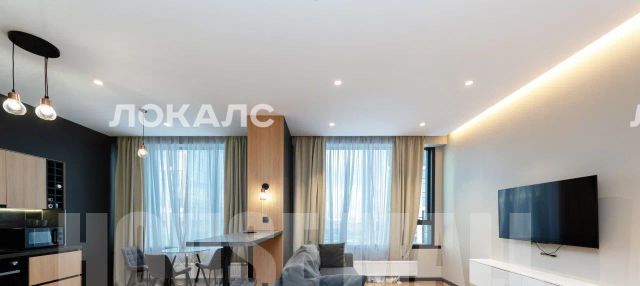 Сдается просторная 3-комнатная квартира с дизайнерской отделкой, представляющая собой впечатляющее место, откуда открывается вид на Москва-Сити.