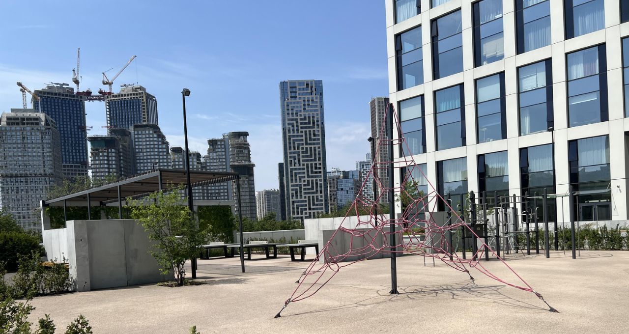 В квартире установлено канальное кондиционирование. Полностью закрытый двор без машин. Есть наземная парковка и подземная.