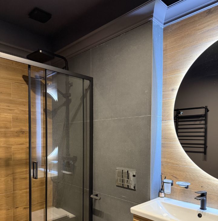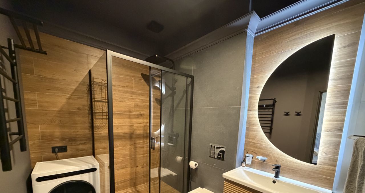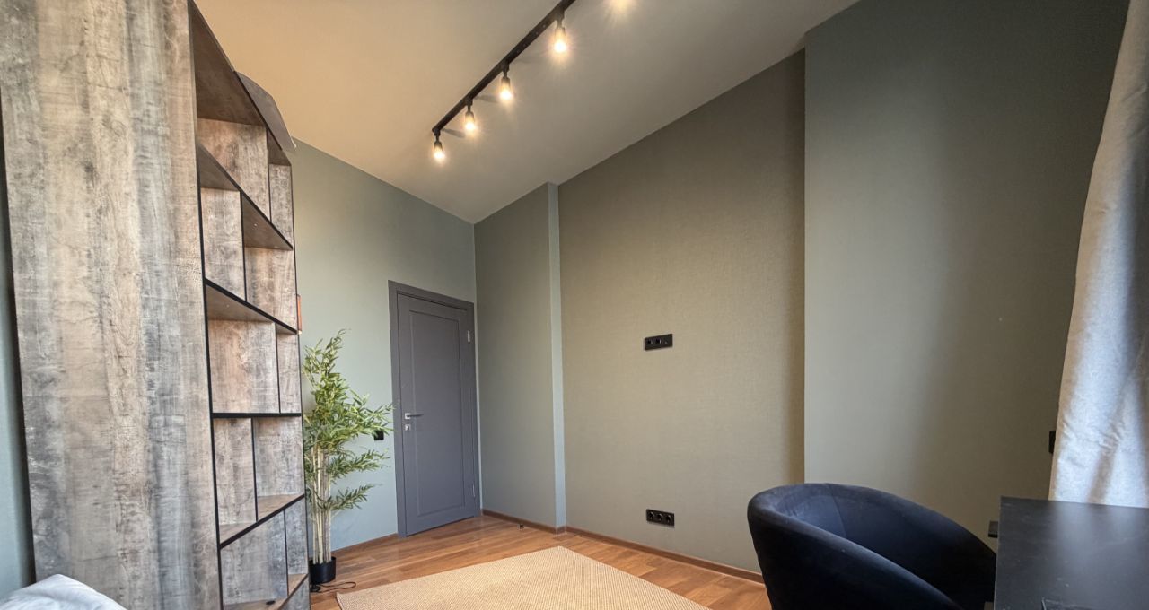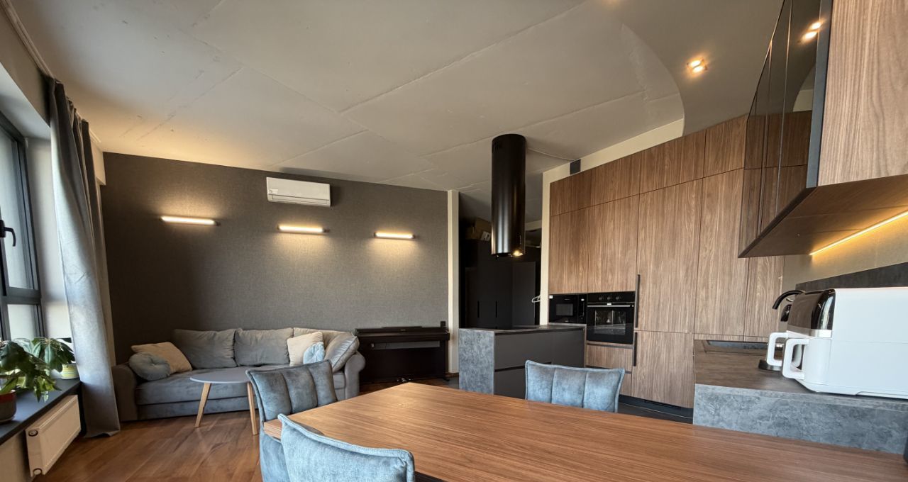 Квартира с дизайнерским ремонтом и продуманной планировкой. Кухня-гостиная, спальня-кабинет, мастер-спальня. В наличии вся необходимая мебель и современная техника: кондиционер, холодильник, посудомоечная машина, телевизор и стиральная машина. Высокие потолки и панорамные окна создают ощущение простора и света. В квартире есть два санузла: один совмещённый и один отдельный, в ванной комнате установлена душевая кабина.