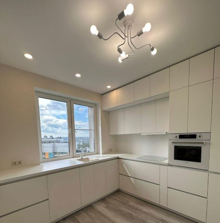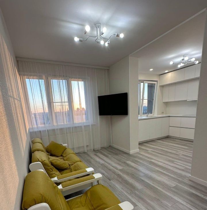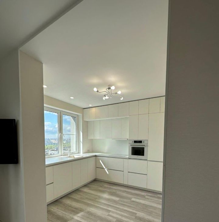 необходимой мебелью. Из техники - холодильник, варочная панель, духовой шкаф, телевизор, стиральная машина, посудомоечная машина.