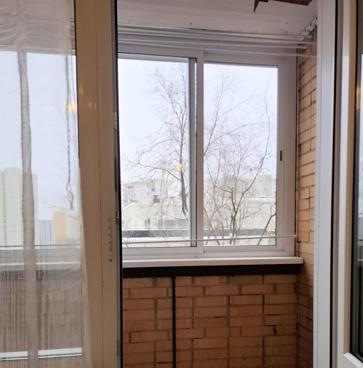Окна из 2-х комнат и кухни выходят во двор, из 1-й комнаты с балконом видно дорогу... Рядом есть сад, школа, торговые центры, кинотеатр.
