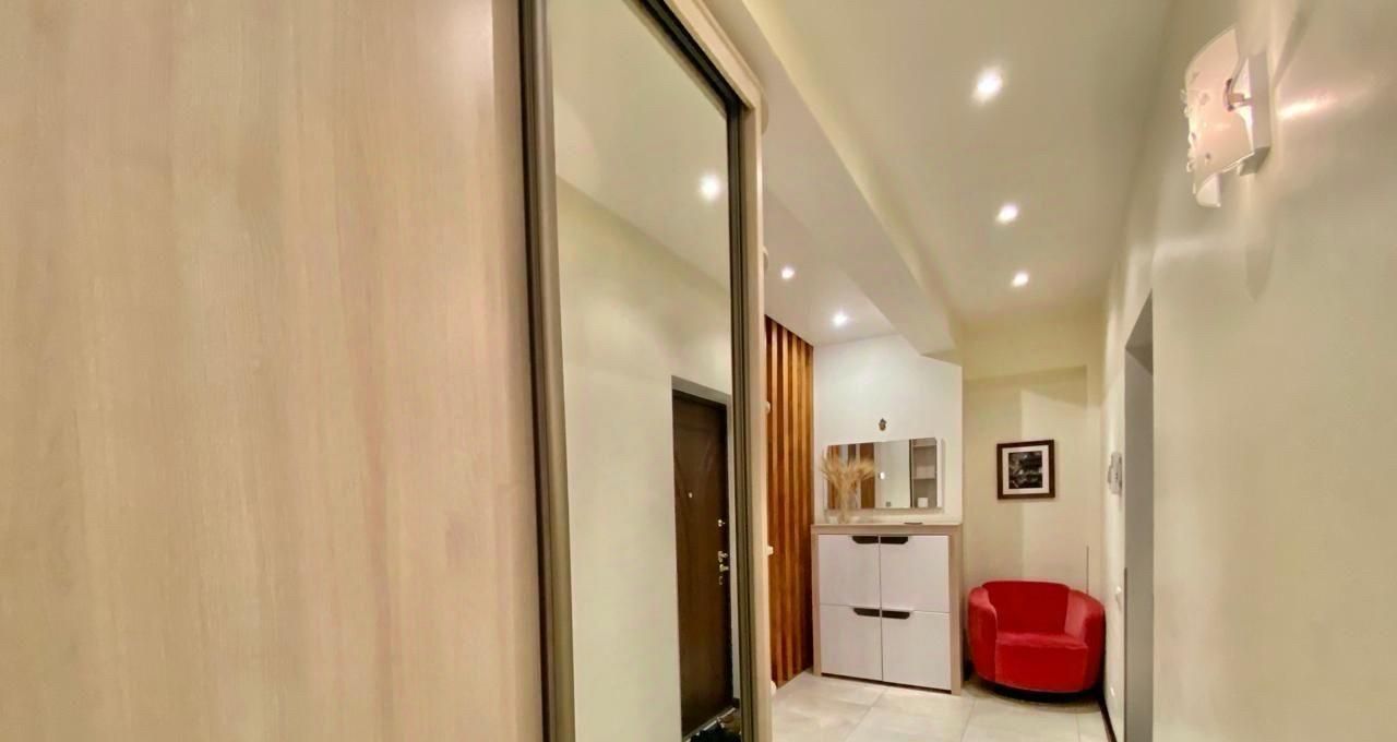 Квартира оформлена в дизайнерском стиле, который сочетает в себе элегантность и функциональность. В комнатах и на кухне есть вся необходимая мебель: удобные диваны, вместительные шкафы, стильные столы и стулья. Кухня оснащена современной техникой, включая холодильник, посудомоечную машину и кондиционер. В ванной комнате установлена душевая кабина. Также есть стиральная машина и телевизор. Для вашего удобства в квартире проведены интернет и телефонная связь.