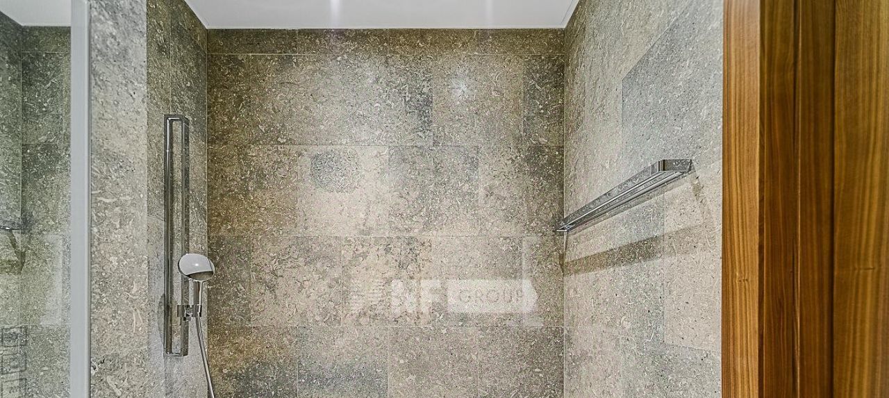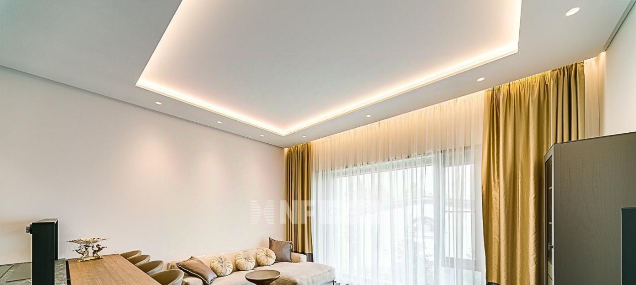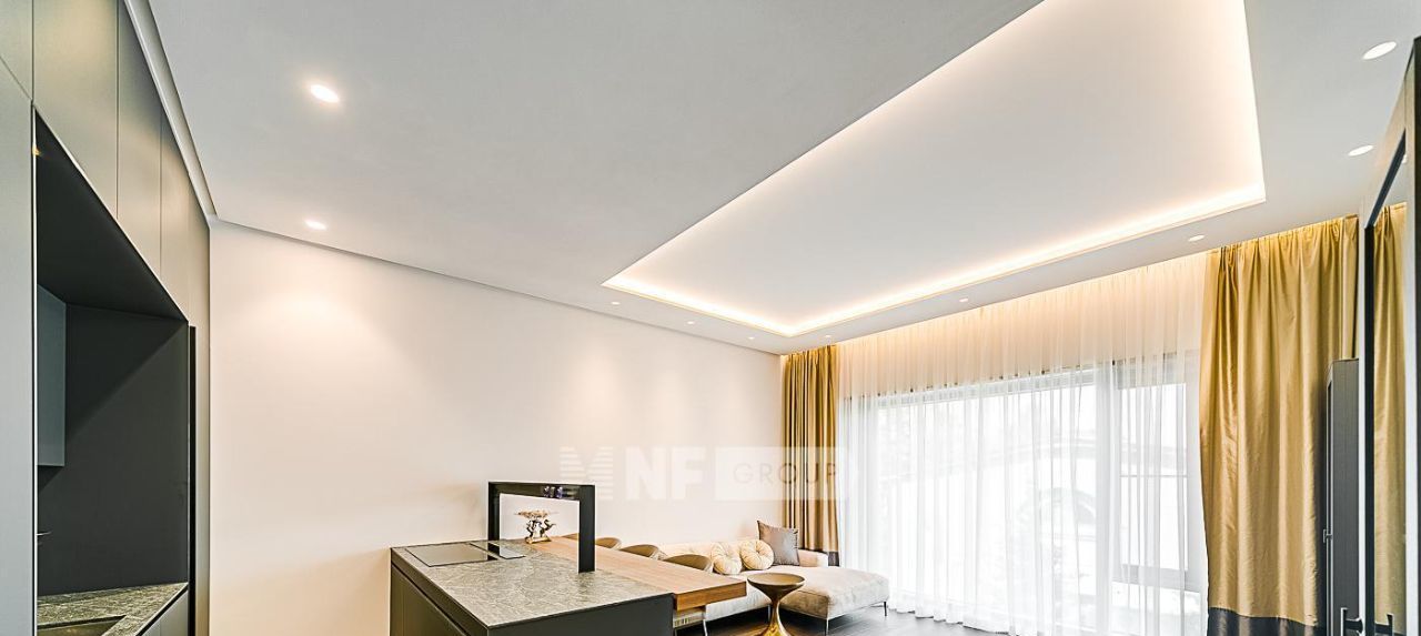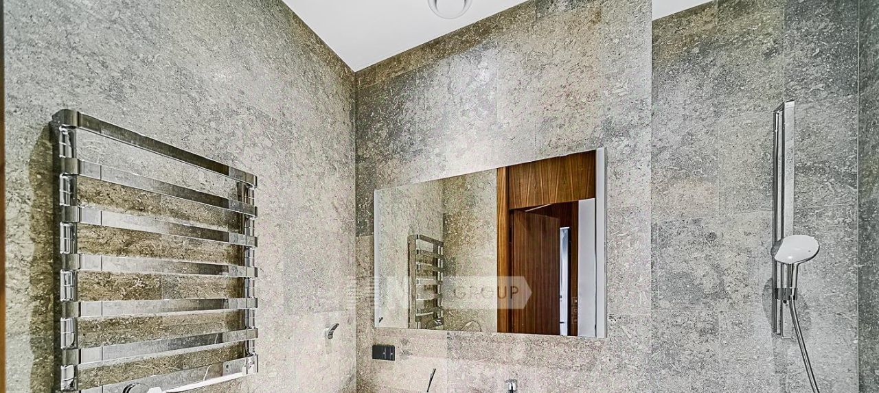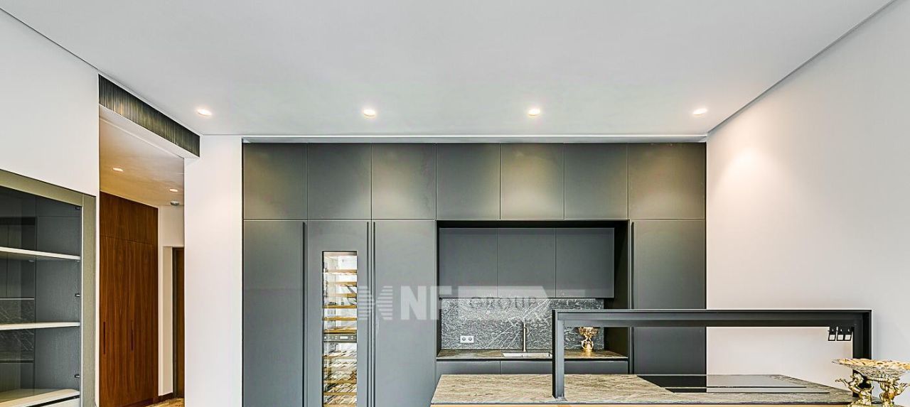 Выполнена дорогая отделка в стиле Metropolis Luxury, все материалы тщательно подобраны из последних коллекций ведущих европейских производителей. Установлена кухня Valcucine с бытовой техникой Gaggenau, светильники iGuzzini, сантехника и мебель в ванных комнатах Antonio Lupi, итальянская мебель в комнатах.