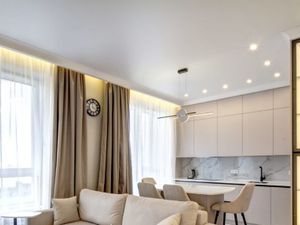 Сдаются отличные аппартаменты. Сделан дизайнерский ремонт с комфортной планировкой. Две спальни и кухня-гостинная. Отлично подойдет для семьи. Окна выходят на две стороны, квартира угловая к красивым панарамным видом. Установлена канальная система кондиционирования с датчиками температуры. В ЖК круглосуточная охрана, видеонаблюдение, хорошие соседи. 1071277