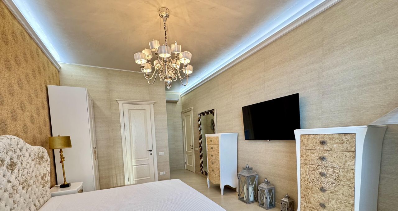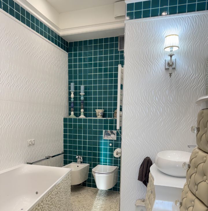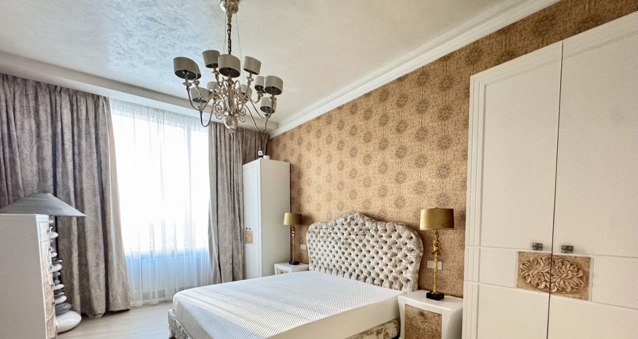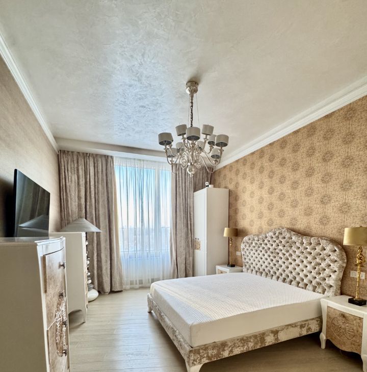 Квартира с дизайнерским ремонтом, что делает ее не только комфортной, но и эстетически привлекательной. В каждой из трех комнат и на кухне есть вся необходимая мебель. В квартире установлена современная техника: кондиционер, холодильник, посудомоечная и стиральная машины, телевизор. Санузлы в квартире раздельные, а также имеется совмещенный санузел с ванной. Окна выходят во двор, поэтому в квартире тихо и спокойно.