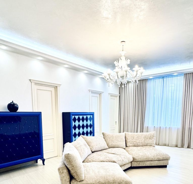 Предлагается в аренду просторная квартира в Москве на Мосфильмовской улице, дом 8. Квартира с тремя изолированными комнатами, просторной гостиной, удобной гардеробной комнатой. Это небоскреб, расположенный в респектабельном и зеленом районе недалеко от Воробьевых гор. Из его окон открываются фантастические виды на исторический центр, московские высотки, Новодевичий монастырь, Лужники, главное здание МГУ. Существенным преимуществом Мосфильмовской улицы - мгновенные выезды ТТК и набережные Москвы- реки, Кутузовский, Университетский и Ломоносовский проспекты- в 5 минутах на авто. Дом отличает эксклюзивная отделка стеклом и мрамором. Небоскреб оснащен бесшумными лифтами, есть трехэтажный паркинг с автомойкой. В закрытом охраняемом дворе есть детский городок. Паркинг, дом и его территория находится под охраной и видеонаблюдением. Дом расположен в безопасном районе среди иностранных посольств, рядом есть школы, детские сады, супермаркеты, рестораны, банки. В непосредственной близости расположился московский гольф- клуб с роскошными полями для игры, прудом и рестораном. Квартира в этом доме сдаётся впервые после ремонта со всей необходимой мебелью и бытовой техникой и находится на 7 этаже 53-этажного монолитного дома, построенного в 2011 году. Общая площадь квартиры составляет 120 кв. м, жилая — 80 кв. м, а кухня — 18 кв. м. Высокие потолки высотой 5 метров придают пространству особую воздушность и свободу.