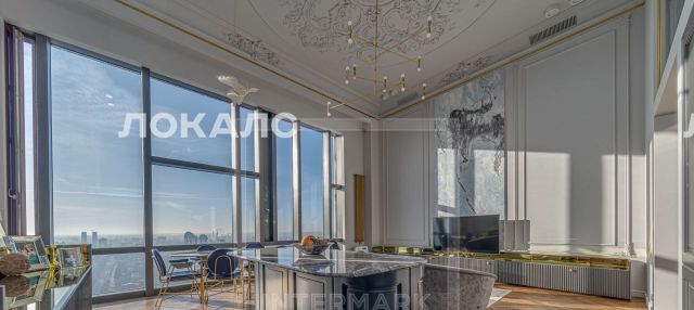 ID 43078. Свободна и показы после 03.11.2025. В аренду предлагается фантастически стильная и светлая двухуровневая квартира с пятиметровыми потолками и панорамными окнами в знаменитом небоскребе района Мосфильмовской. Квартира линейной планировки, окна ориентированы на юго - запад. Непосредственно при входе расположены: гостевой санузел и гардеробная комната с изолированной постирочной. Объединенная кухня-гостиная с 5-ти метровыми потолками и панорамными окнами в пол, из которых открывается захватывающая дух перспектива города. Здесь же, на первом уровне, планировкой предусмотрена мастер спальня с собственной ванной и гардеробной комнатами. На втором уровне разместилась еще одна спальня с ванной комнатой и удобными системами хранения, которая может стать детской или кабинетом, в зависимости от требований к функционалу. Окна панорамные, открываются невероятные виды на центр города. Премиальный ремонт, эксклюзивная отделка с применением дорогих материалов и брендов. Элегантные входные группы, функционирует полный комплекс безопасности (охрана, видеонаблюдение), организован подземный паркинг, автосервис и мойка. Можно арендовать машиноместо в подземном паркинге за дополнительную плату. В непосредственной близости расположены парк Воробьевы горы, Мосфильмовский пруд, легендарный музей Мосфильма, а также Московский гольф-клуб.