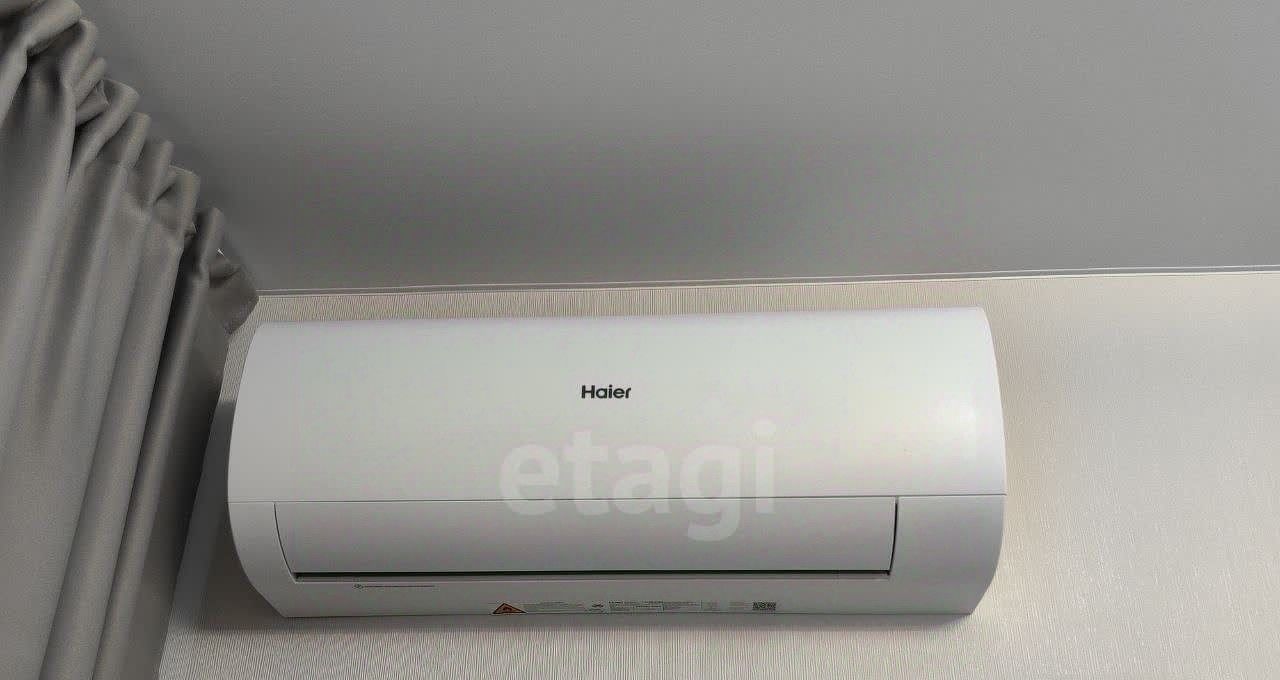 Раскладной диван, кондиционер, обеденный стол со стульями.