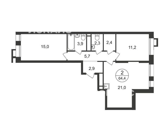 3-к кв. Москва, Москва, Московский г. ул. Лаптева, 7 (64.4 м²)
