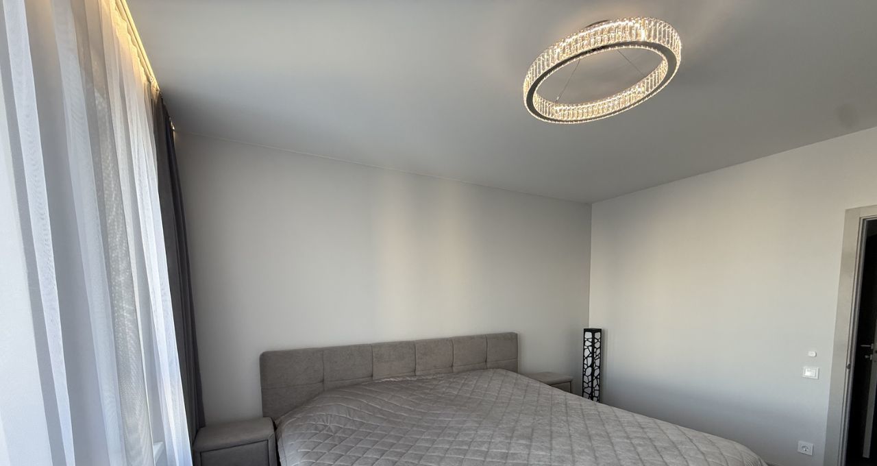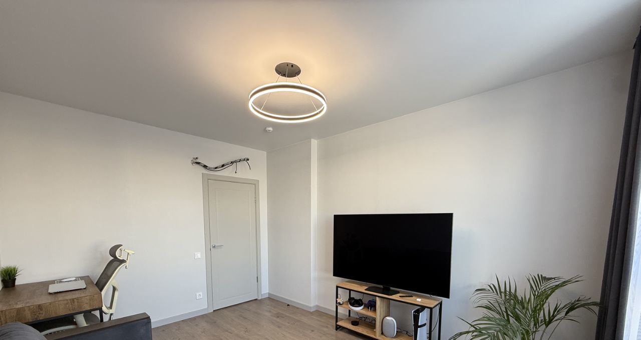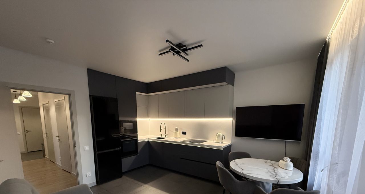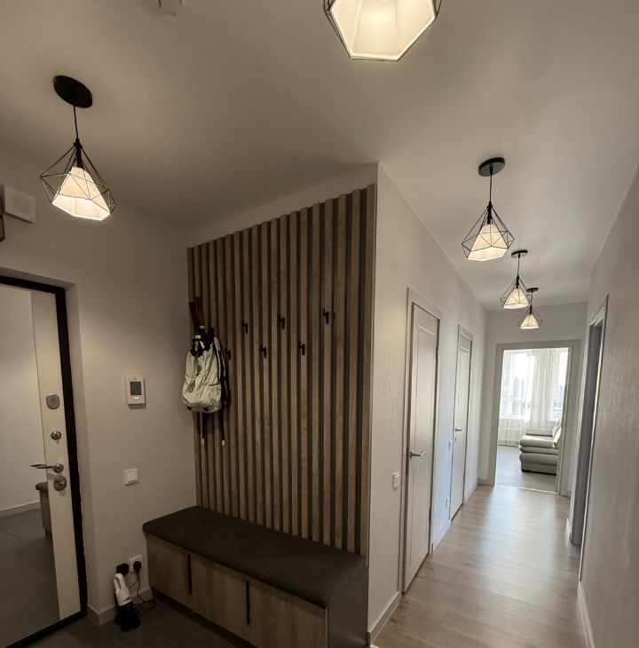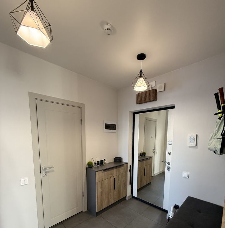 Квартира выполнена в спокойном современном стиле: светлая цветовая гамма, современное освещение и аккуратный минималистичный интерьер. Пространство выглядит стильно и уютно, при этом остаётся максимально функциональным и удобным для жизни.