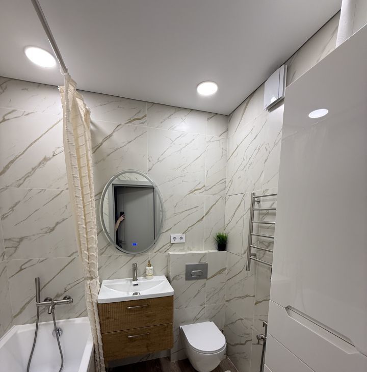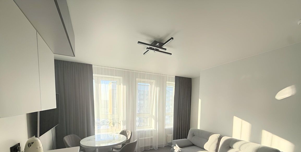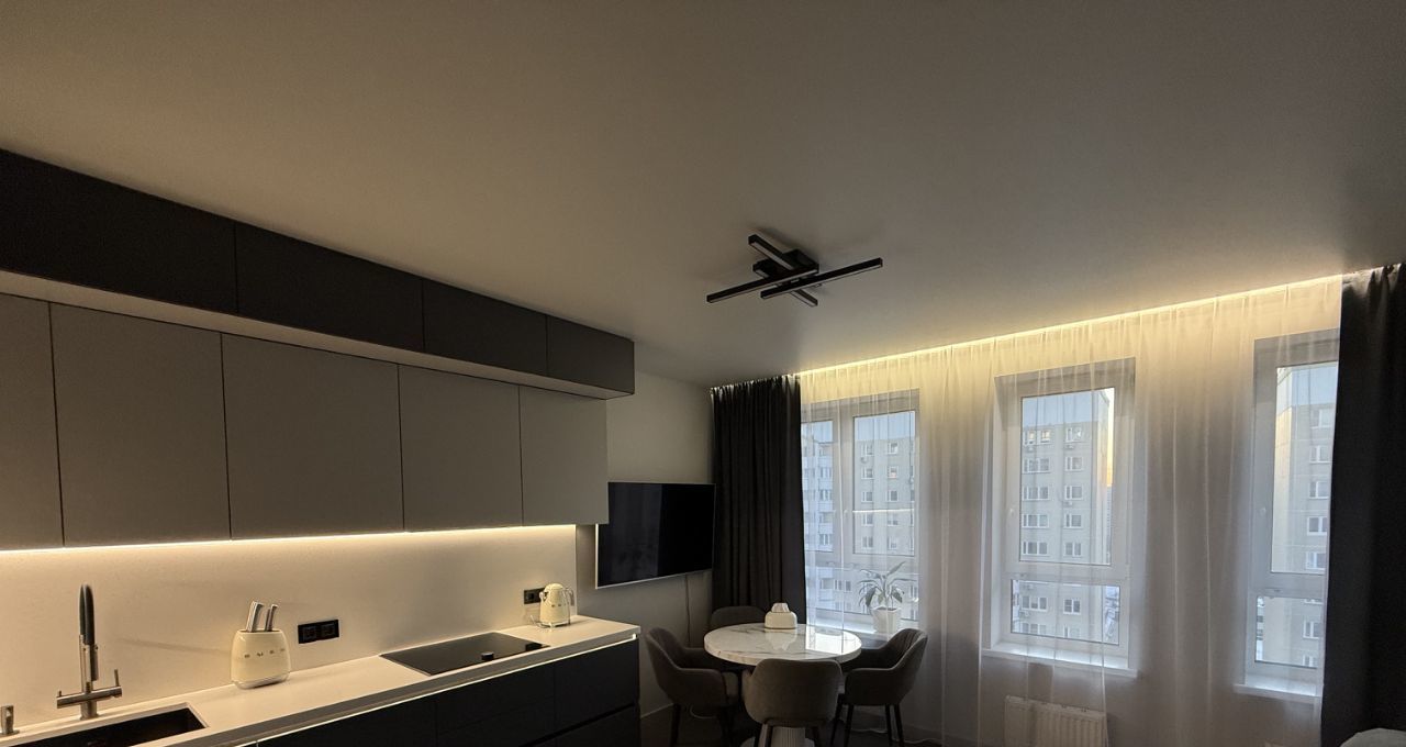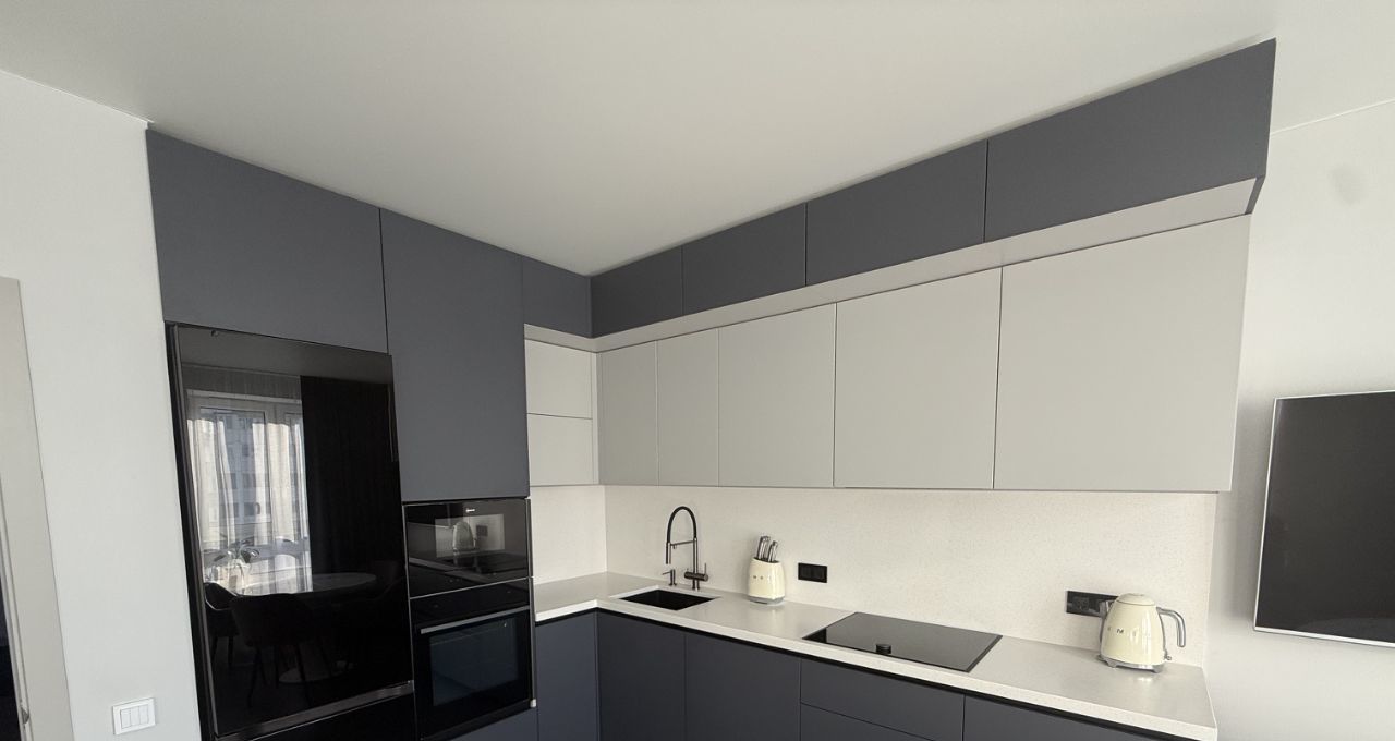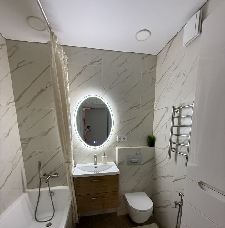 Квартира выполнена в спокойном современном стиле: светлая цветовая гамма, современное освещение и аккуратный минималистичный интерьер. Пространство выглядит стильно и уютно, при этом остаётся максимально функциональным и удобным для жизни.