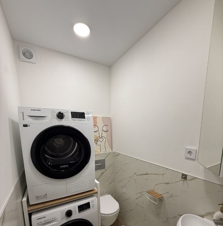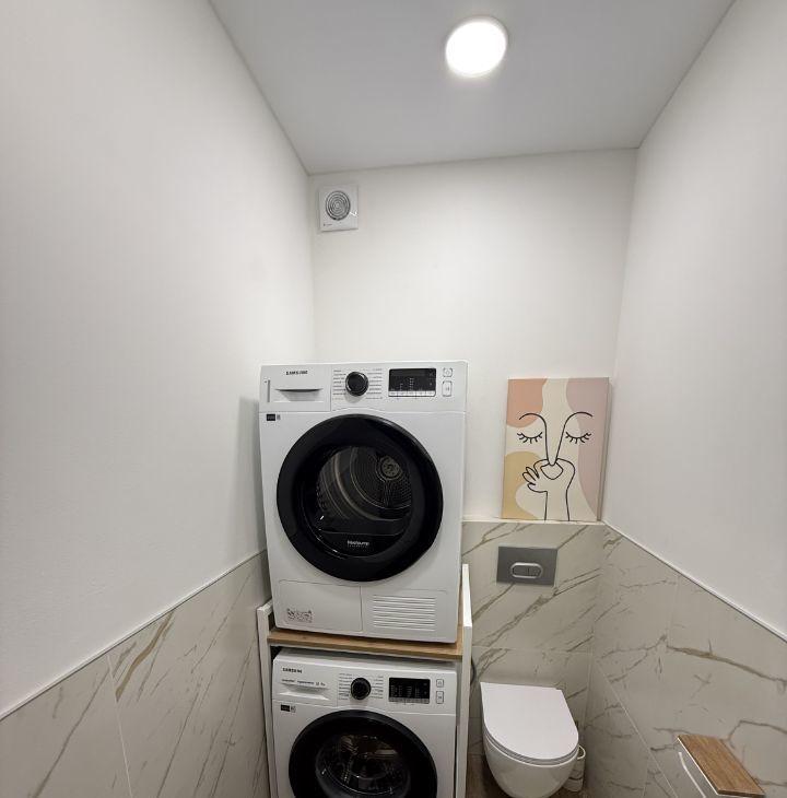 Также оборудована отдельная постирочная зона со стиральной и сушильной машиной, что делает повседневную жизнь значительно комфортнее.