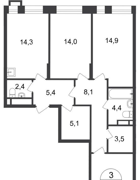 3-к кв. Москва, Москва, Московский г. ул. Лаптева, 9 (87.7 м²)