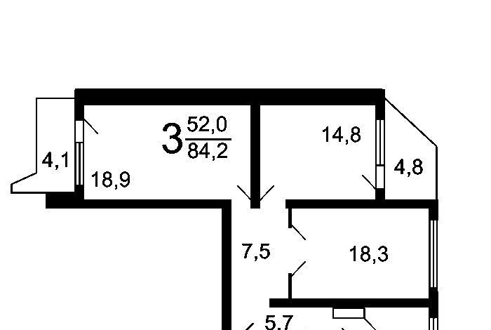 3-к кв. Москва, Москва, Московский г. ул. Радужная, 14к1 (89.0 м²)