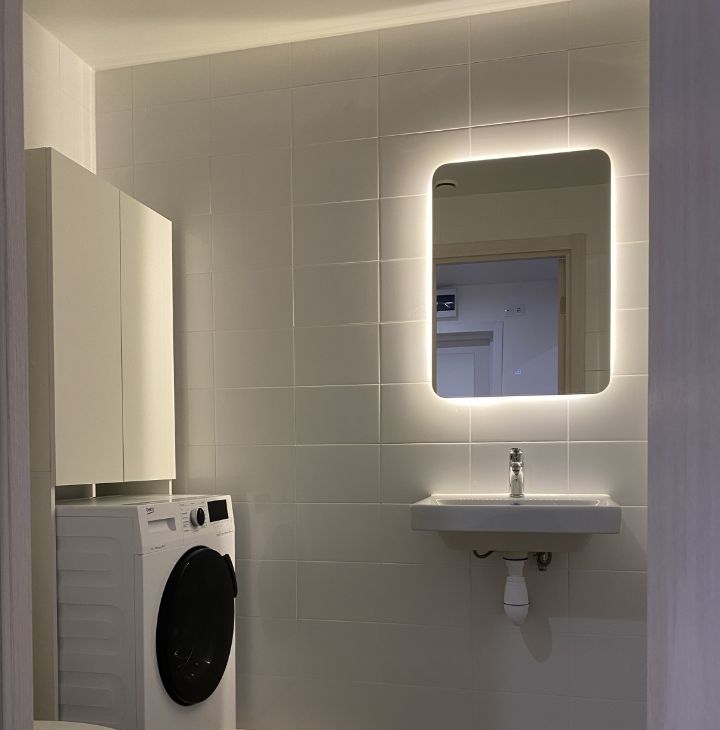 Квартира полностью меблирована: на кухне и в комнатах есть все необходимое для комфортного проживания. В квартире два совмещенных санузла, один из которых оборудован ванной.
