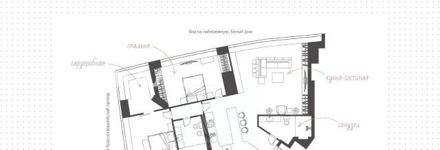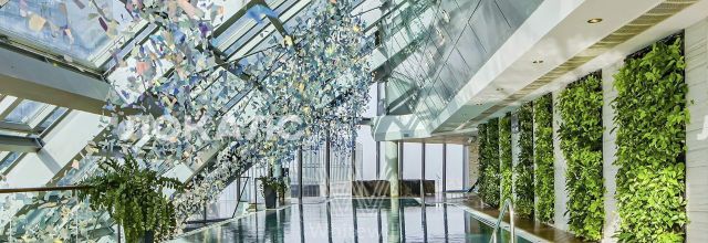 Видовые апартаменты с 2-мя спальнями общей площадью 150 м² в башне "Федерация Восток" на 71 этаже. Выполнена дизайнерская отделка с использованием натурального дерева и камня. Интерьер оформлен в лаконичных светлых тонах, на полу выложен паркет. Потолки высотой 3,2 метра украшены авторскими светильниками, стены декорированы картинами.