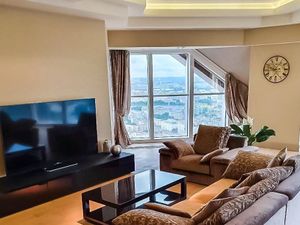 Апартаменты с дизайнерским ремонтом впечатляют своей роскошью и комфортом. В комнатах установлена современная мебель, которая гармонично сочетается с общей концепцией интерьера. В наличии вся необходимая техника: кондиционер, холодильник, посудомоечная и стиральная машины, а также телевизор. Санузел оборудован как ванной, так и душевой кабиной, поэтому вы сможете выбрать, что вам удобнее в данный момент.