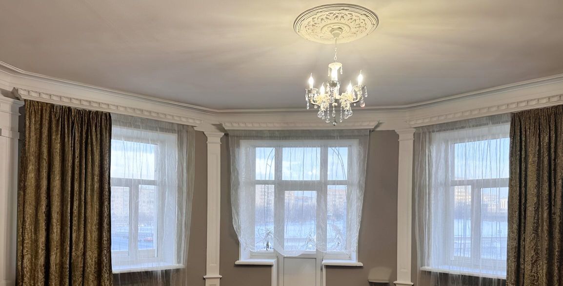 Сдается просторная трехкомнатная квартира площадью 110 кв. м на пятом этаже сталинского 14-этажного дома. После косметического ремонта. Дом построен в 1938 году и находится всего в 5 минутах пешком от ближайшей станции метро. Высокие потолки высотой 3.2 метра создают ощущение простора и света.